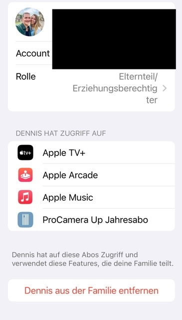 Was muss man tun? Muss er sein Apple Music Abo (Einzelperson) erst kündigen? Aber warum sieht er die von mir freigegeben App nicht?