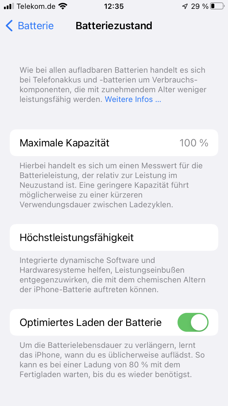 Wenn ich das iPhone zum Laden danach anschliesse, startet die Aufladung bei 7%.