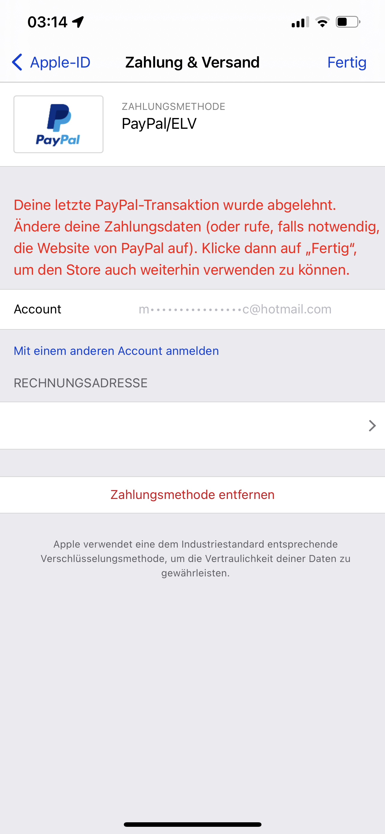 ich würde gerne wieder mein paypal unter den Einstellungen dann bei Käufe als Zahlungsmethode einrichten jedoch zeit es mir jedes mal einen Fehler an wäre nett wenn sie mir weiterhelfen könnten.