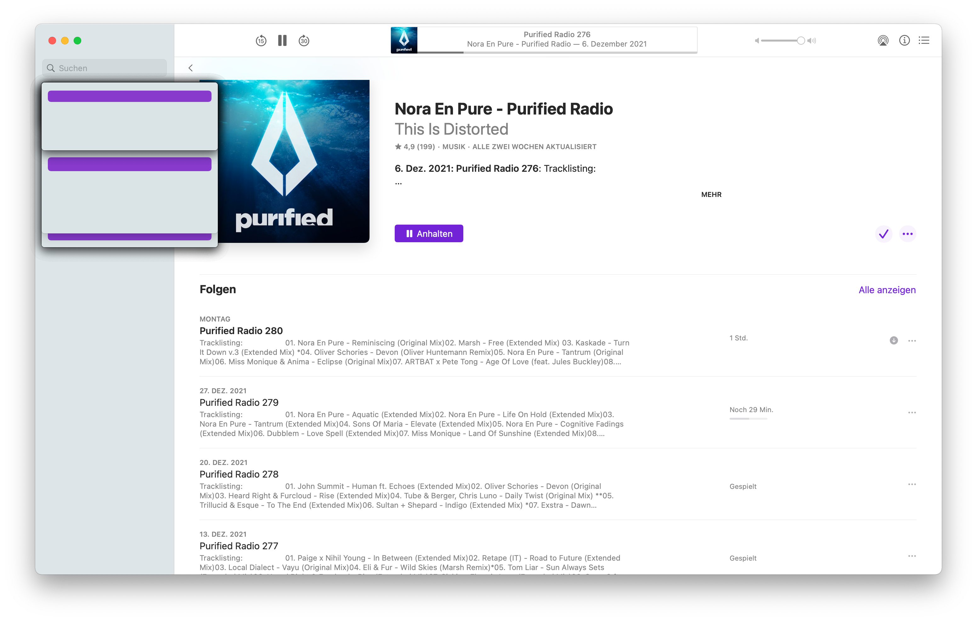 ich habe bei Nutzung der Suchfunktion der Podcast-App immer wieder einen Darstellungsfehler, wenn ich nach einer Suchanfrage versuche, eine zweite Anfrage zu stellen (siehe Screenshot). Der Fehler lässt sich durch ein Beenden der App auch nicht beheben (das Programmfenster öffnet sich mit exakt der gleichen fehlerhaften Darstellung), eine weitere Suchanfrage ist nicht möglich. Nur ein kompletter Neustart des MacBooks löst das Problem – bis zur nächsten Suchanfrage. Any ideas …?