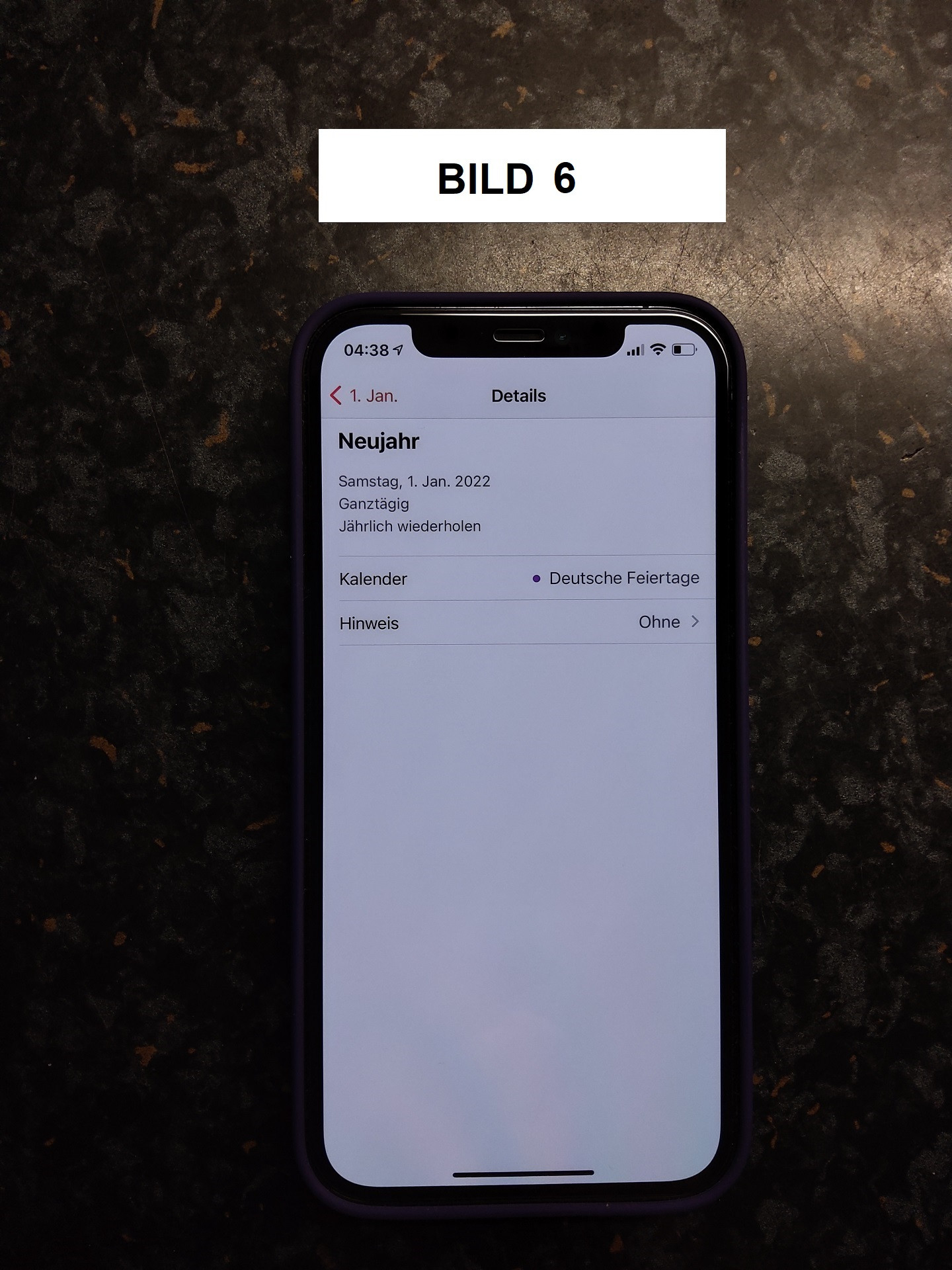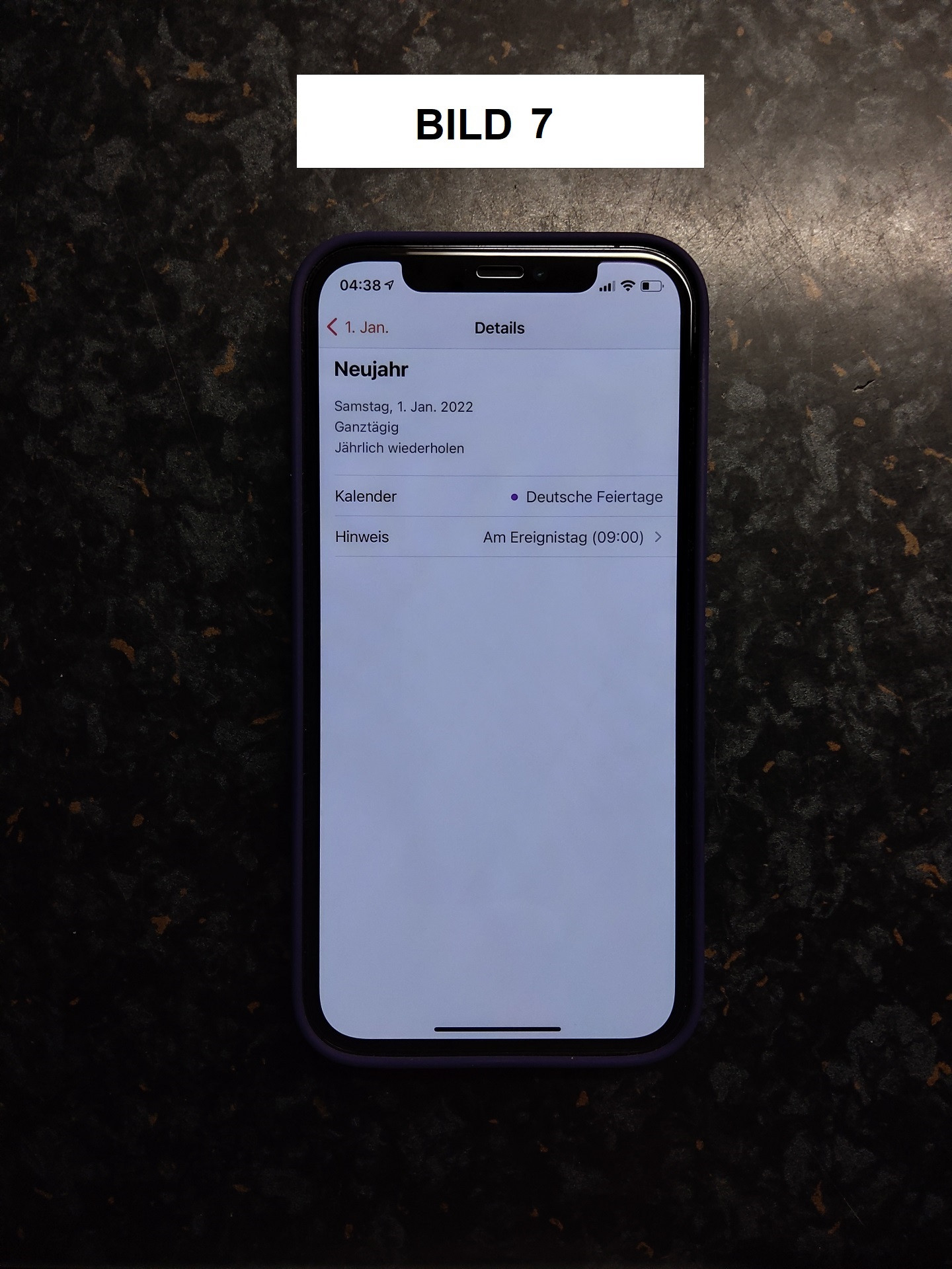 Bild 6 = jetzt sieht es so aus, als ob das richtig umgestellt wurde. Hält aber nur so lange, bis die Kalender-App komplett geschlossen und wieder geöffnet wurde.