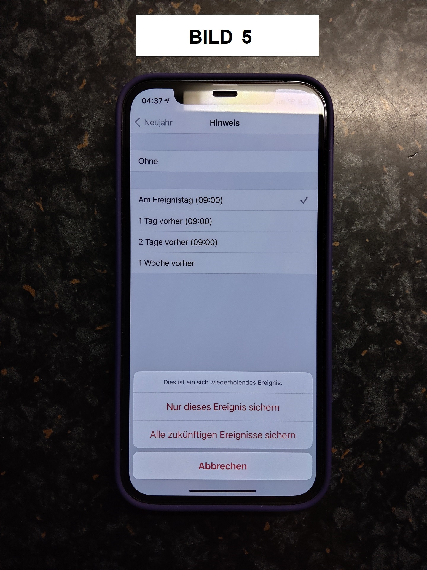 Bild 7 = jetzt wurde automatisch wieder umgestellt auf "Am Ereignistag (09:00)"