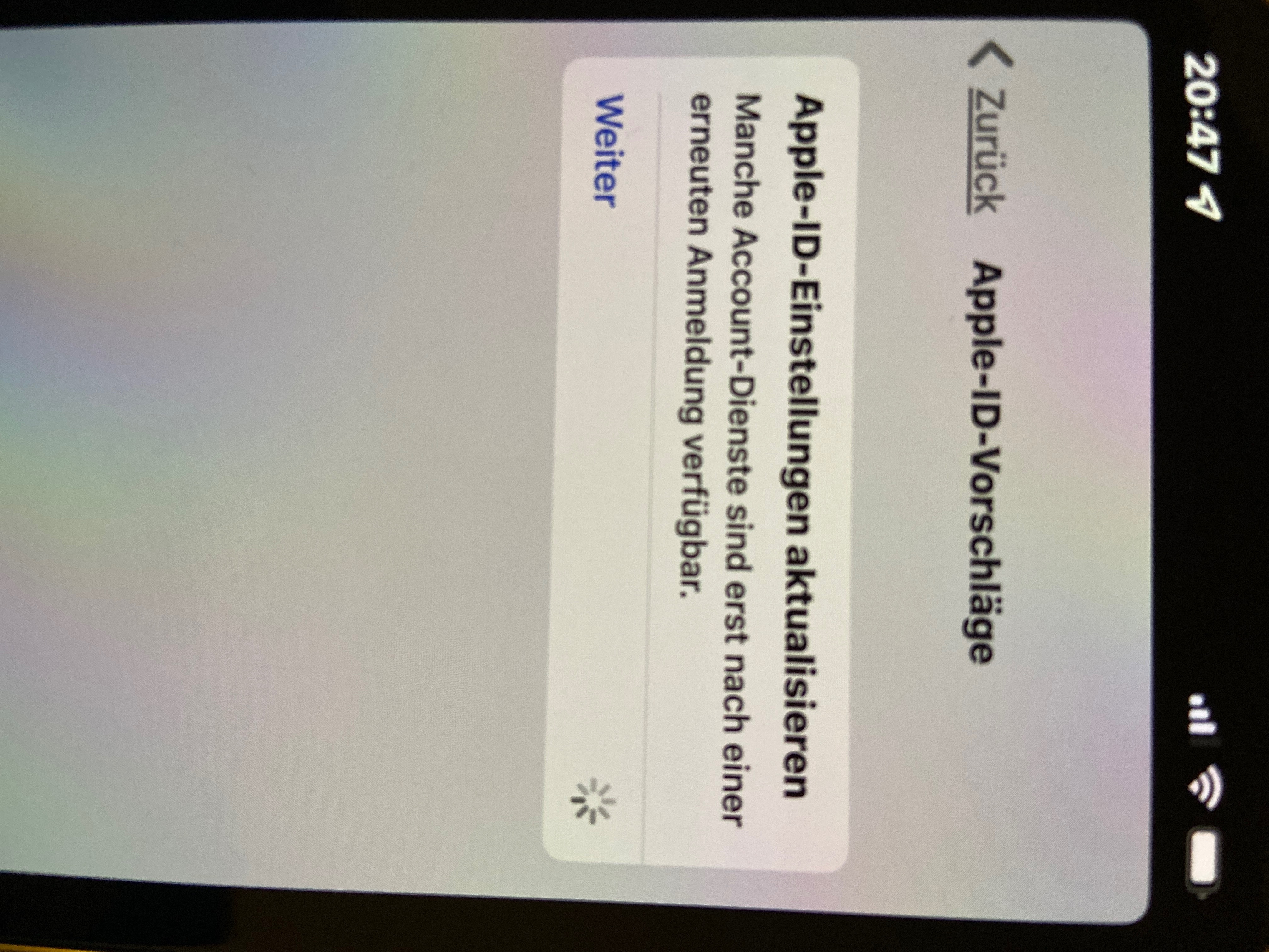 Die Apple-ID Einstellungen aktualisieren funktioniert bei meinem neuen iPhone nicht