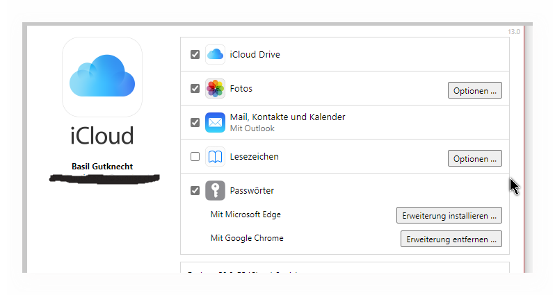 Erweiterung iCloudpasswörter für Chrom aktivieren.