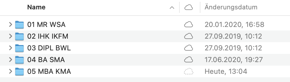 Hallo Leonie, wie du auf meinen Screenshots erkennen kannst, sind die gestrichelten Wolken leer. Demnach heißt das auf "Upload warten". Aber warum bleibt dieses Symbol über Tage hinweg, während andere Daten scheinbar synchronisiert werden. Es scheint auch so, als dass die Daten auch synchronisiert werden, lediglich das Symbol in diesem Zustand bleibt. Es liegen in den Ordnern normale PDFs oder Office-Dateien welche kleiner als 3 MB sind. Ich verwende keine spezielle Firewall.