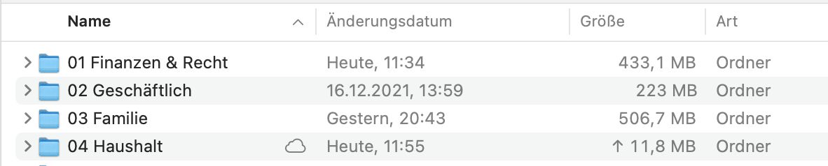 Ich finde es auch seltsam, dass bei manchen Ordner bei der Anzeige der Größe auch ein Pfeil angezeigt wird, als wenn noch etwas hochgeladen werden müsste. Aber wie kann das sein, dass dies ein dauerhaften Zustand ist?