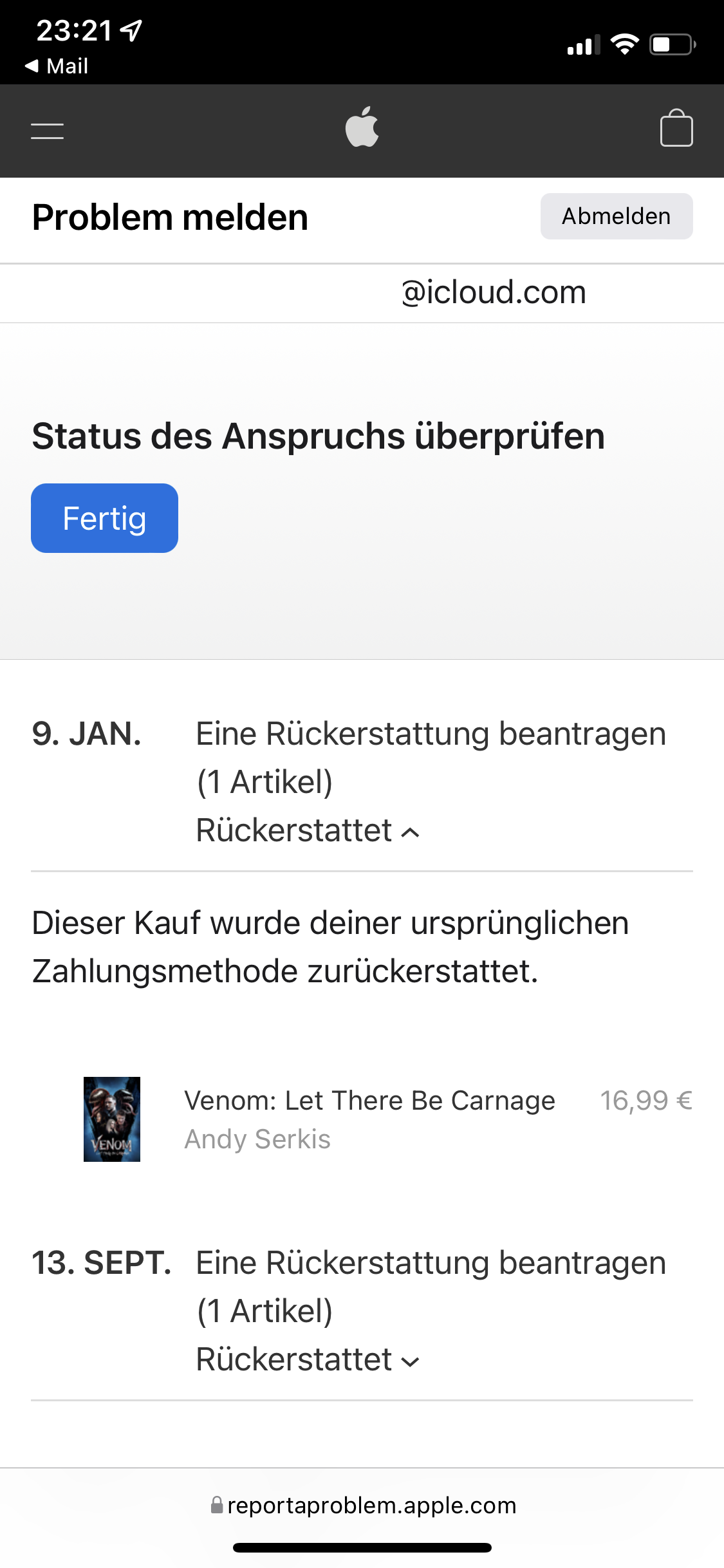 Store-Guthaben: Es kann bis zu 48 Stunden dauern, bis die Rückerstattung im Saldo deiner Apple-ID angezeigt wird.