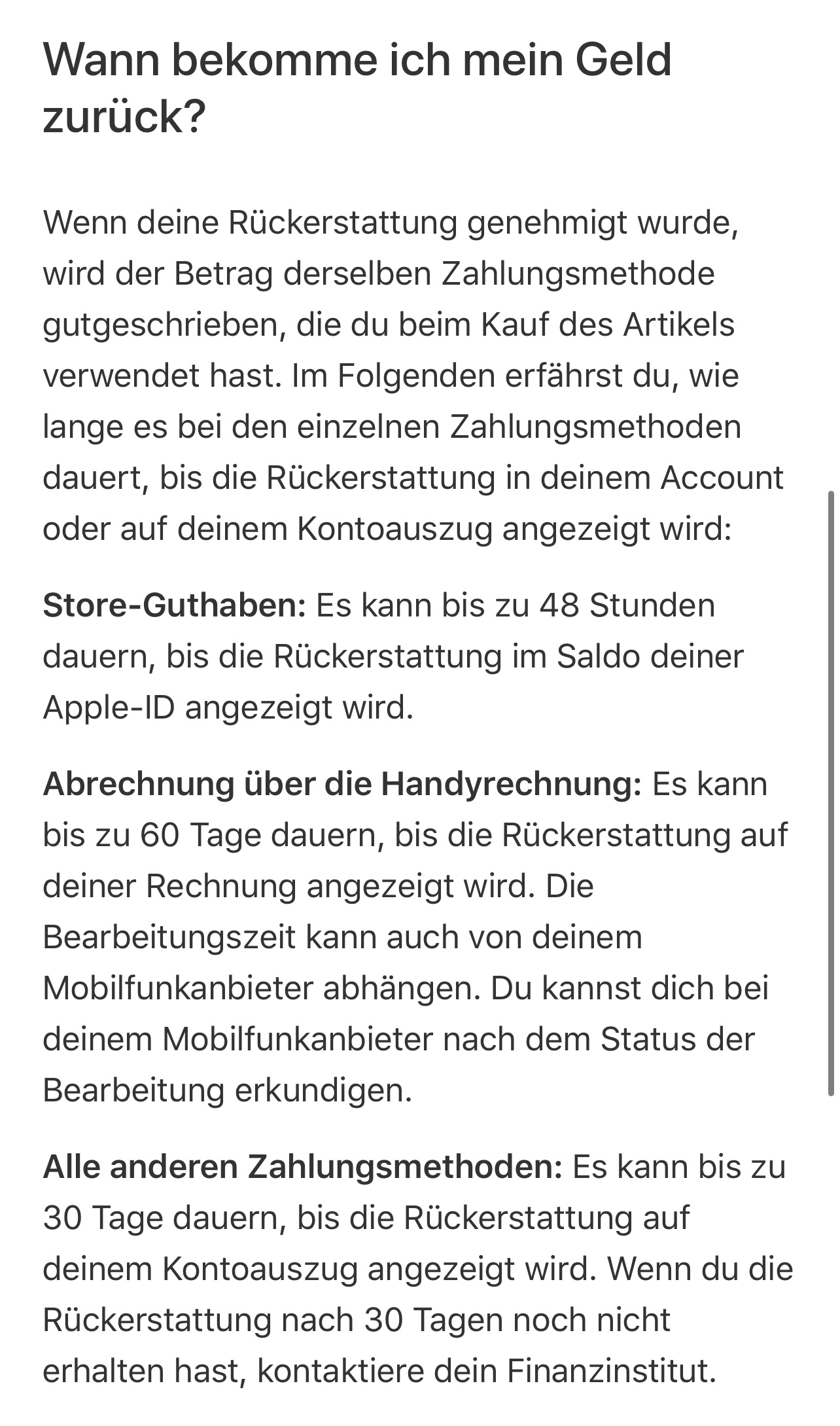 Wenn die Rückerstattung genehmigt wurde kann das bis zu 14 Tagen dauern.