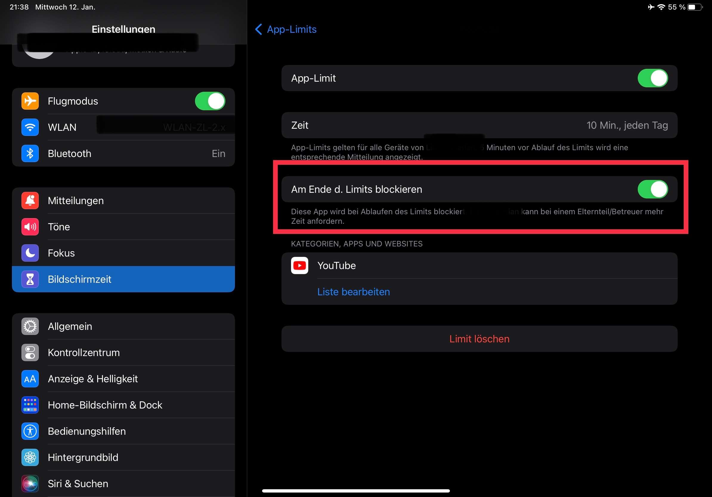 Wie bekomme ich das hin, die Option 1min beim Kinder Account beim Beginn der Auszeit auszuschalten? Es kann nicht sein, das ein Konzern wie Apple sich permanent Fehler bei der Beschränkung von App Limits erlaubt. Mein Sohn hat eine Beschränkung von 1std am Tag. Durch das ständige Verlängern von 1 min kommt er auf eine Gesamtzeit von ca. 2 std. Trotz ständiger Kontrolle von uns. Ich habe nicht mehr die Zeit ständig beim Apple Support anzurufen. Oft haben die selber keine Lösung. Es kann einfach nicht sein. Das Problem besteht schon seit längerem, und es gibt keine Lösung! Diese diverse Lücken beim Kinder Account darf es nicht geben. Nicht bei Apple. Ich brauche eine sinnvolle Lösung!!! Diese Lücke ist nicht die erste..!