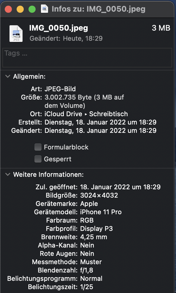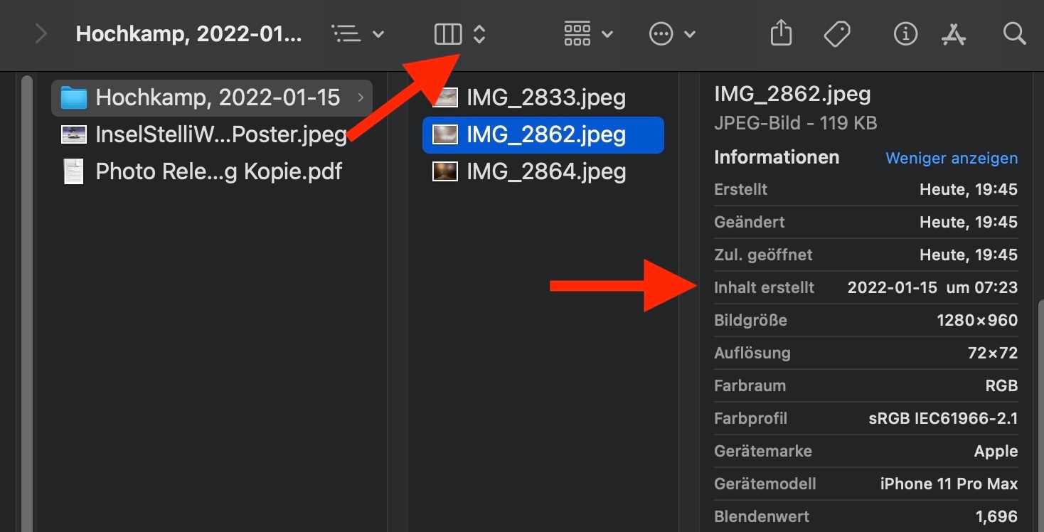 ich würde gerne meine Fotos vom iPhone auf den Mac Importieren. Hat soweit auch alles geklappt. Allerdings fiel mir beim Sortieren auf, dass die Informationen der Bilder neu geschrieben wurden. Z.b. wurde ein Bild am 20.08.2020 aufgenommen. Nach dem Import steht aber ein komplett anderes Datum da. Und zwar das des Importes. Heißt also, wenn ich über mehrere Jahr Fotos mache und alle nach z.B. Schreibtisch -> Bilder iPhone 2020-2022 Importieren will ist das Datum überall gleich. Macht sich schlecht beim sortieren und suchen. Gibt es da eine einfache Lösung oder muss ich mit dem Problem des Importieren von Fotos leben?