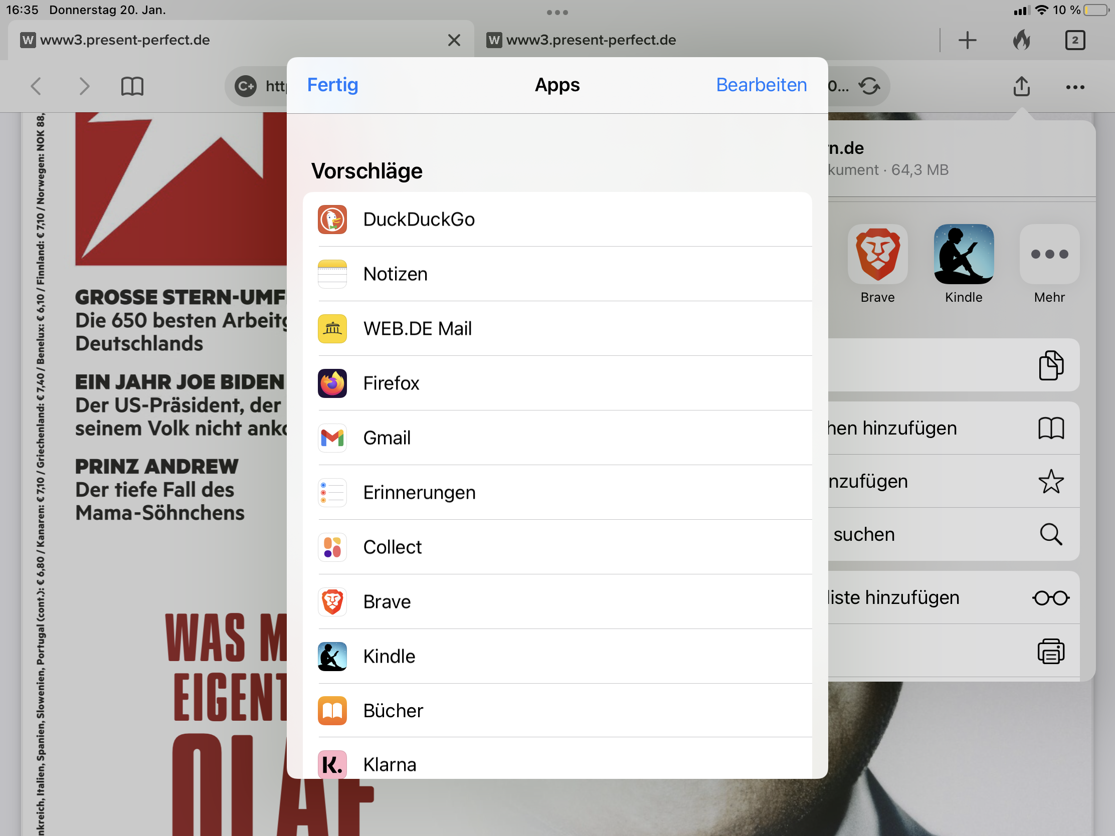 Bisher habe ich problemlos eine abonnierte Zeitschrift in „books“ herunterladen und speichern können, so daß ich sie später lesen konnte. Neuerdings habe ich Probleme, denn es erscheint der Hinweis auf Umwandlung in pdf, aber das Ergebnis erscheint nicht in books wie bisher. Im Ordner Dateien ist ebenfalls nicht zu finden. Wo muß ich suchen, und wie kann ich wieder nach der alten Methode verfahren? ipad mit ios 15.2.1