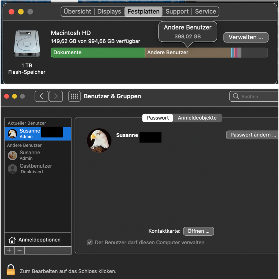 Ich habe ein MacBook Pro Bereich und "Andere Benutzer" Ich weiß nun nicht mehr, ob ich diesen anderen, also meinen Inhalt meines anderen Rechners einfach löschen kann und sollte?