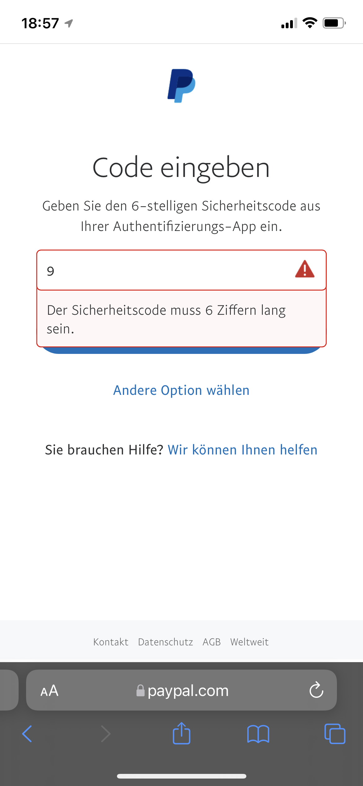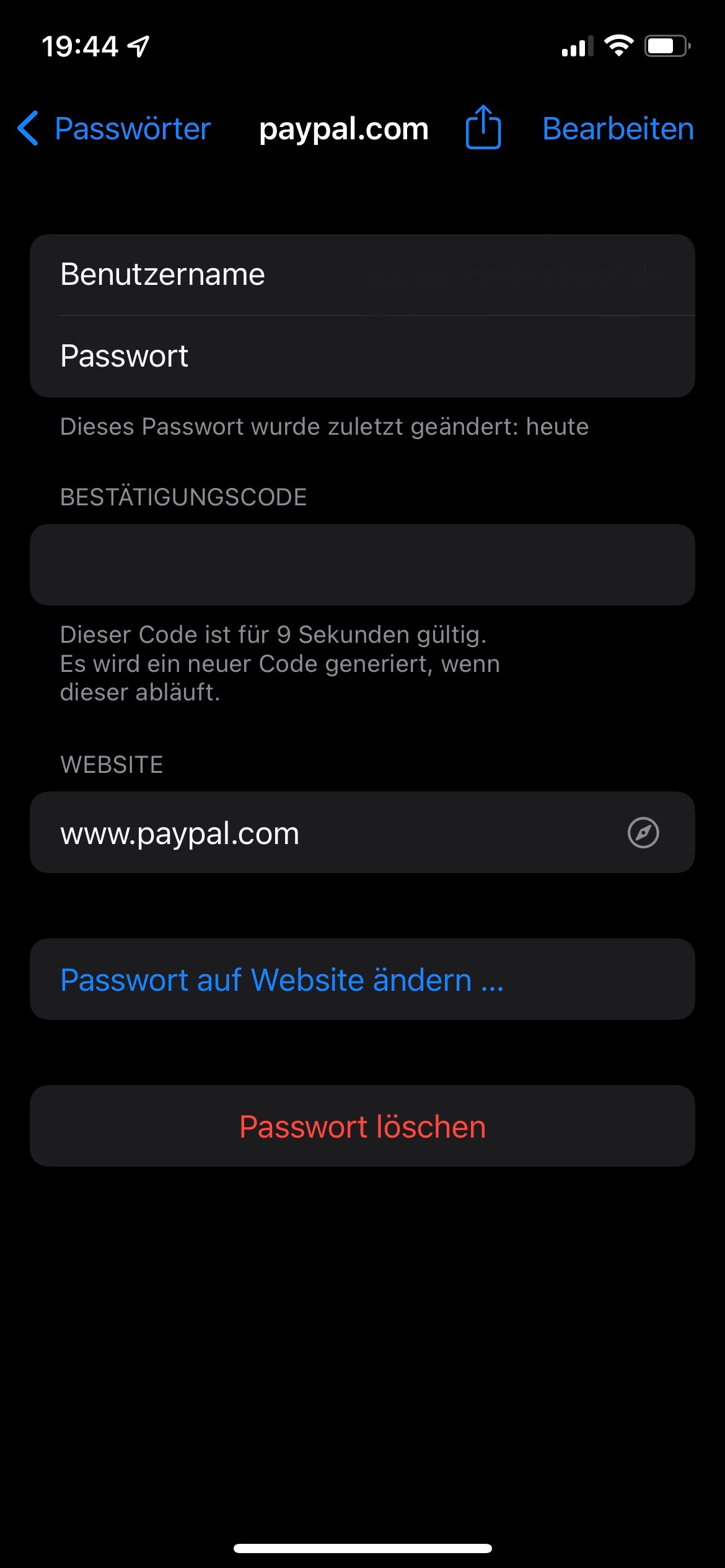 Bei mir funktioniert das OTP auf der PayPal-Website leider nicht richtig. Obwohl in der Passwort-Verwaltung ein 6-stelliges OTP angezeigt wird, erscheint auf der Website beim Einloggen nur die erste Stelle davon.