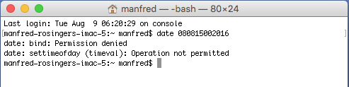 Halt, es geht. Ich habe die Systemzeit zurückgestellt, allerdings über Systemeinstellungen, mit dem Terminal ging es nicht: