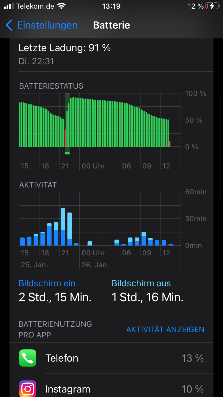 Guten Tag! Ich habe bei meinem iPhone SE (2020) das Problem, dass dieses (momentan) bei 51% Batterieleistung herunterfährt und sich nur einschalten lässt, wenn es an eine Stromquelle angeschlossen wird. Ich hatte mein erstes SE (2020) im September 2020 gekauft und hatte im April 2021 das gleiche Problem, dass sich zuerst bei 10%, dann bei 15%, usw. bis 42 %, das Gerät plötzlich abschaltet. Nach vielen Chats mit dem Apple Support habe ich es letztendlich über GRAVIS reklamiert, man hat einen Platinenfehler diagnostiziert und mir ein Austauschgerät zur Verfügung gestellt. Seit ca. 3 Monaten habe ich aber wieder dieses Problem, so dass ich nicht mehr von einem Hardware-, sondern von einem Software-Problem ausgehe, da ich die Daten auf einem alten SE der ersten Generation gesichert hatte und diese dann aufs neue Gerät übertragen hatte (und es damit quasi nach meiner Theorie infiziert habe). Ich hatte lange Zeit die Corona-Warn-App im Verdacht, die ich dann zeitweise komplett vom Gerät heruntergenommen habe (was in der aktuellen Zeit natürlich nicht sinnvoll ist), aber auch das bringt momentan keine Abhilfe. Ich habe die Hintergrundaktualisierung auf wenige Apps reduziert und mit Stromsparmodus und Optimiertes Laden der Batterie experimentiert; es nutzt nichts. Auch erzwungene Neustarts sowie ein Aktualisieren der Software über iTunes habe ich probiert. Nur alles löschen und komplett neu Aufsetzen möchte ich vorerst nicht.