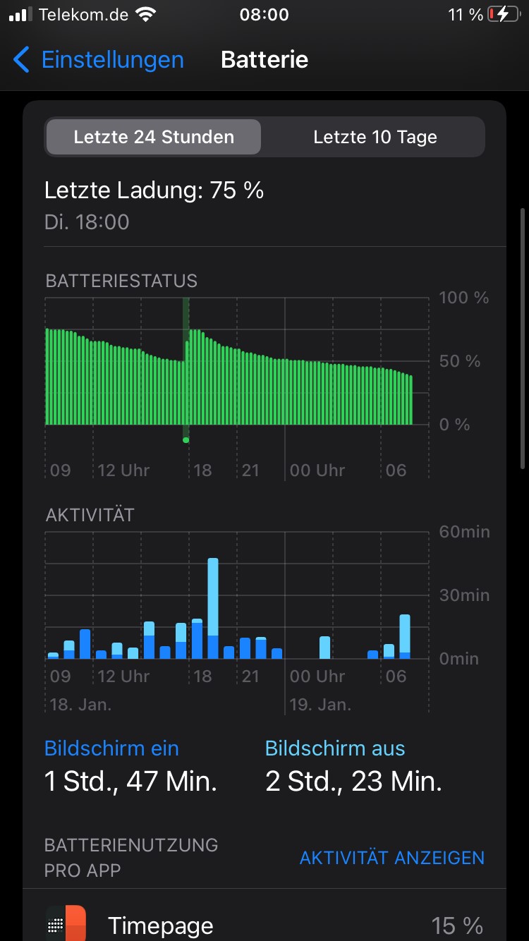 Ich füge 2 Fotos des Batterieverlaufs bei.