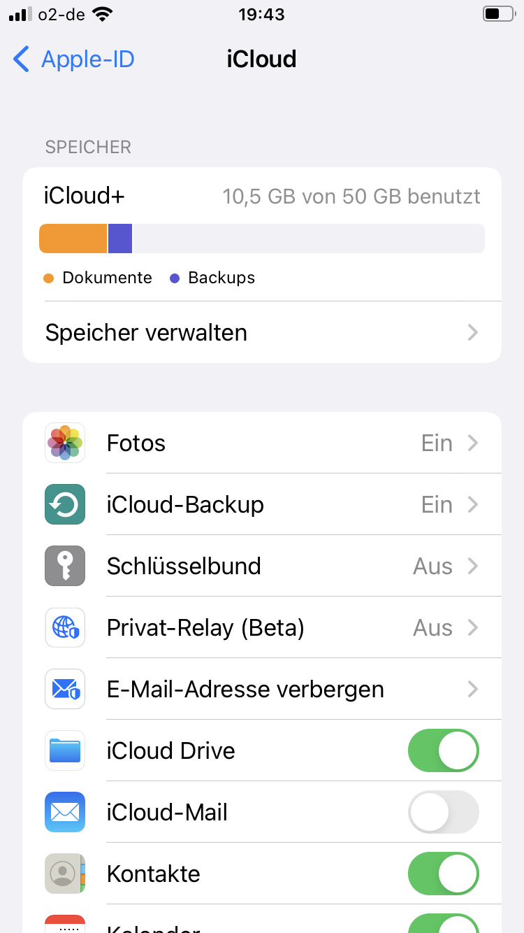 Dann reichen 50GB Cloud Speicher, von denen schon mehr als 10GB belegt sind, nicht, um ein Backup des iPhones zu machen. Wenn du iCloud backups machen möchtest, solltest du mindestens soviel Cloud Speicher abonnieren, wie dein iPhone an lokalem Speicher hat, weil der Backup dazu dient, Kopien der lokalen Daten in iCloud zu machen.