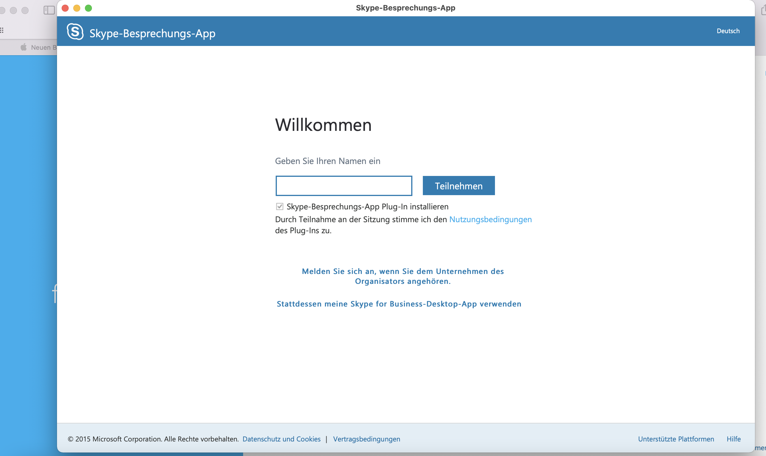 Von da an geht es nicht weiter. Es wird nichts installiert und ohne das PlugIn kann ich dem Meeting nicht beitreten.