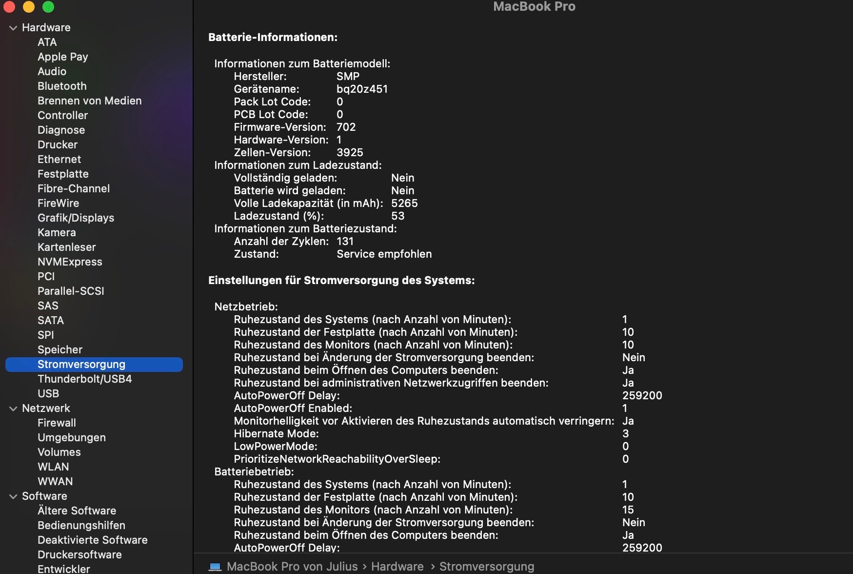 Das komische an der Sache ist, das mein MacBook erst 130 Ladezyklen hat und meines Wissens nach die Batterie erst nach 1100 Zyklen getauscht werden muss. Ich habe auch schon einen Diagnosetest gemacht, bei dem nicht rausgekommen ist, neueste Software (Monterey 12.2) habe ich auch installiert