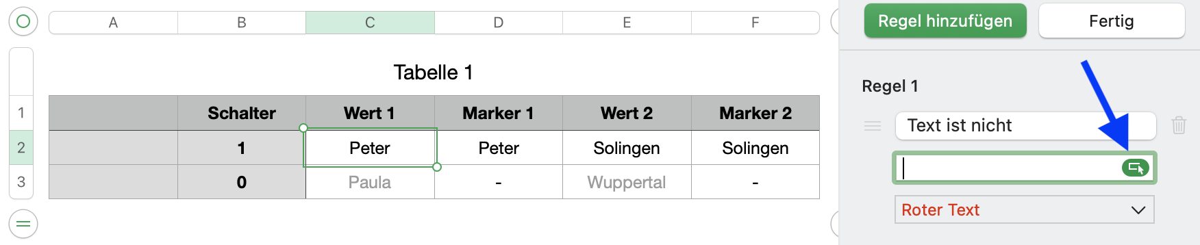 Nun kannst du deine bedingte Markierung festlegen.