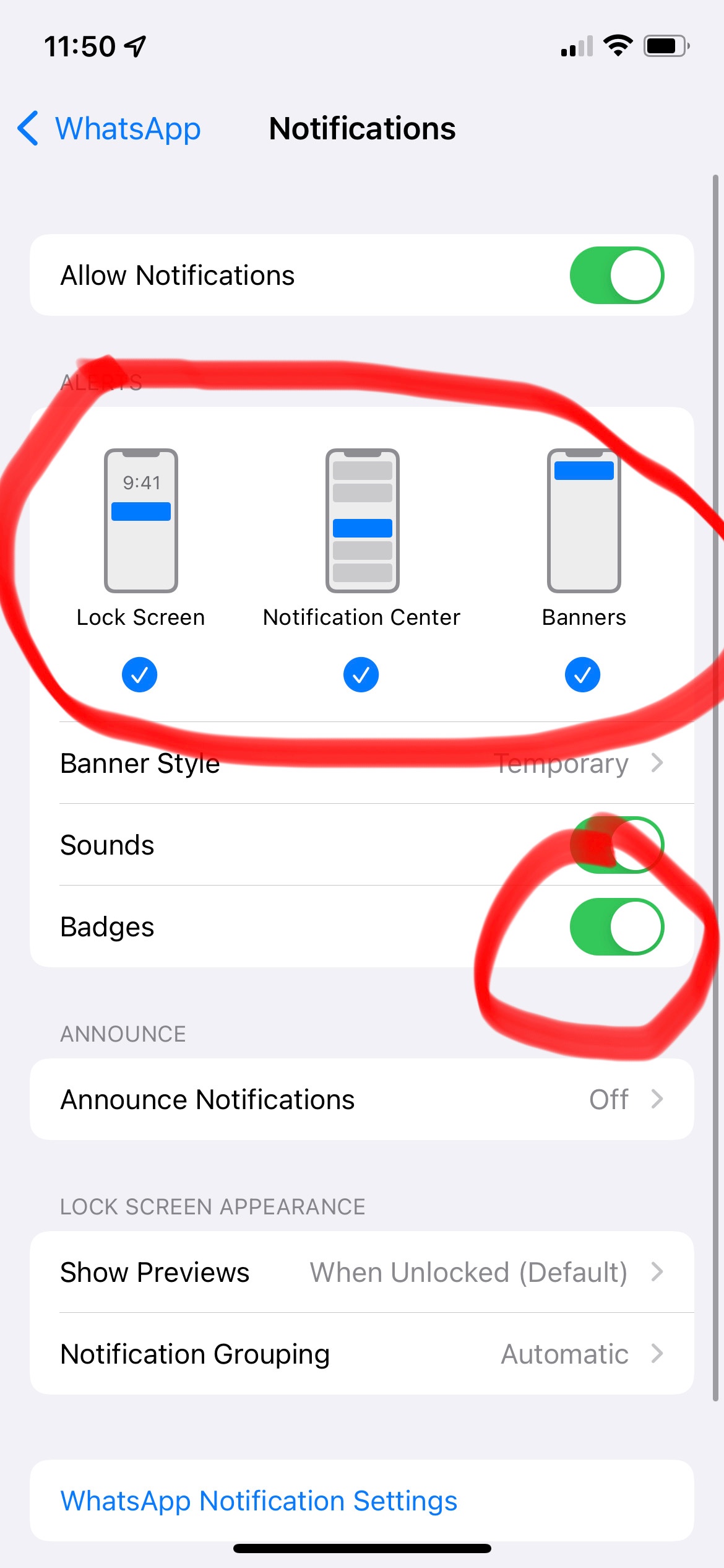 What’s App Meldungen werden in der App auf dem Homebildschirm nicht angezeigt