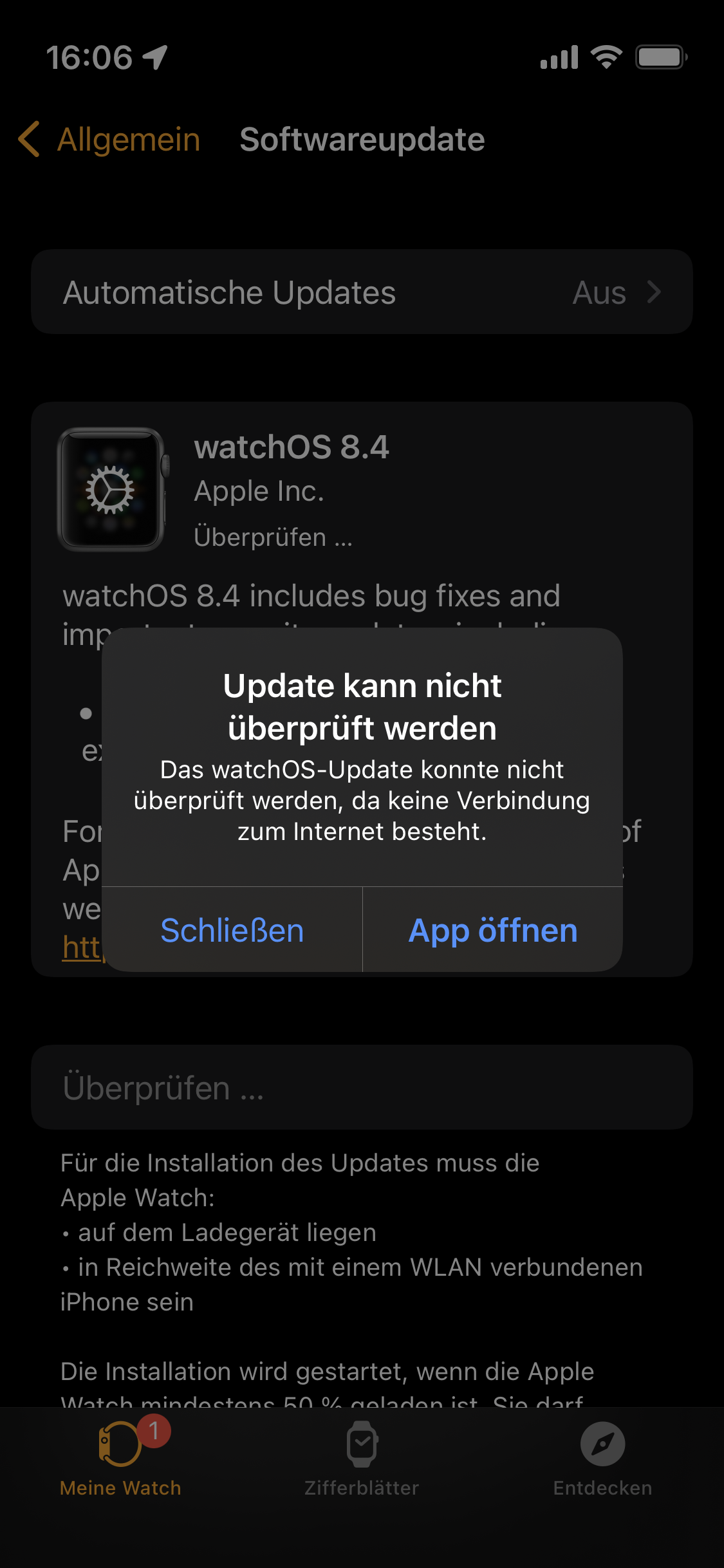 Apple Watch 3 läßt sich nicht auf watchOS 8.4 updaten