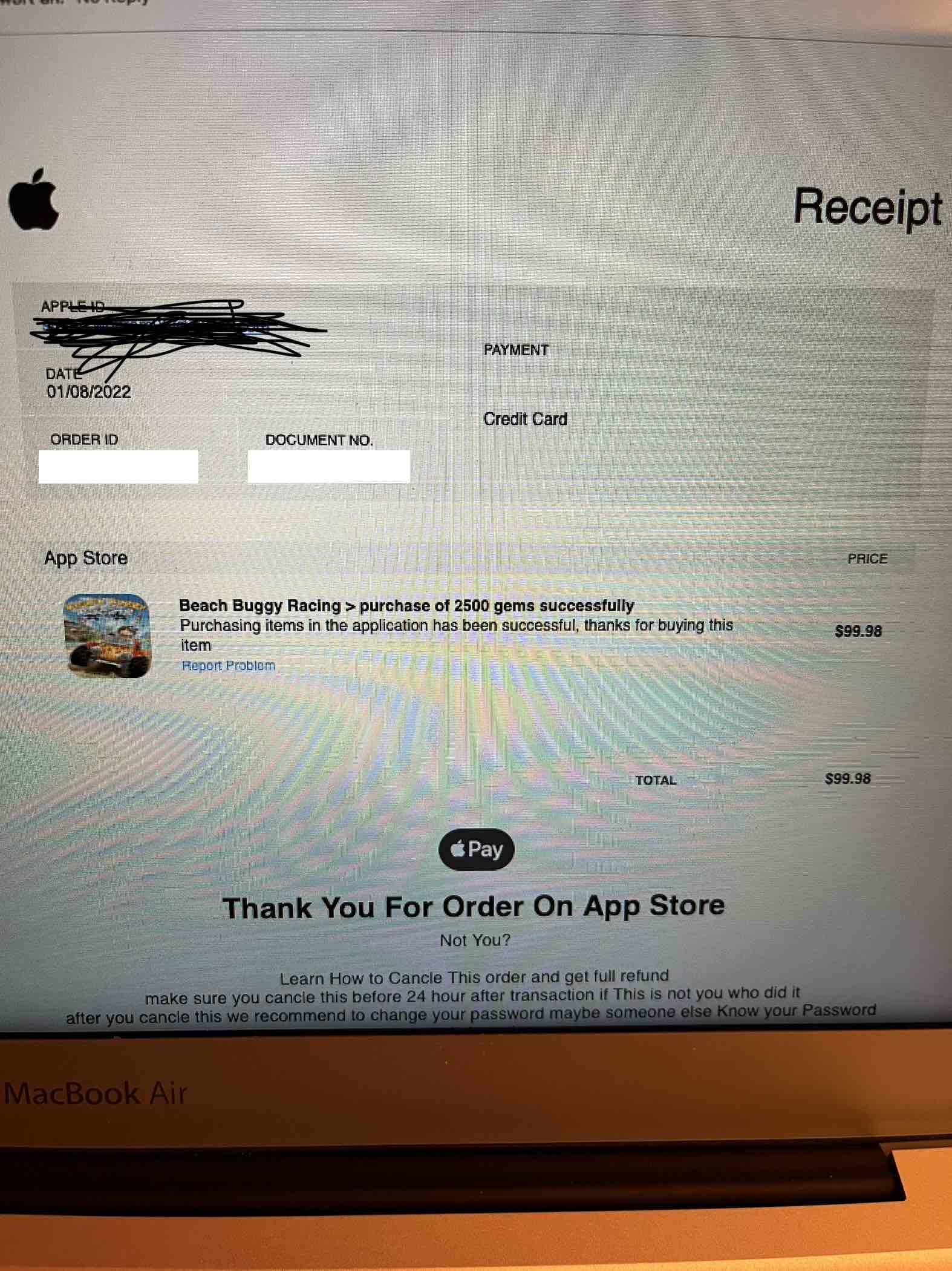 Hallo ich habe gerade in meinem Spam Ordner in iCloud eine komische Mail gesehen die angeblich von Apple kommt. Muss ich mir Sorgen machen ? Ich habe diesen Kauf nie getätigt