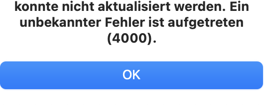Fehlermeldung:“Fehler 4000“ oder „Suche nach Update fehlgeschlagen“.