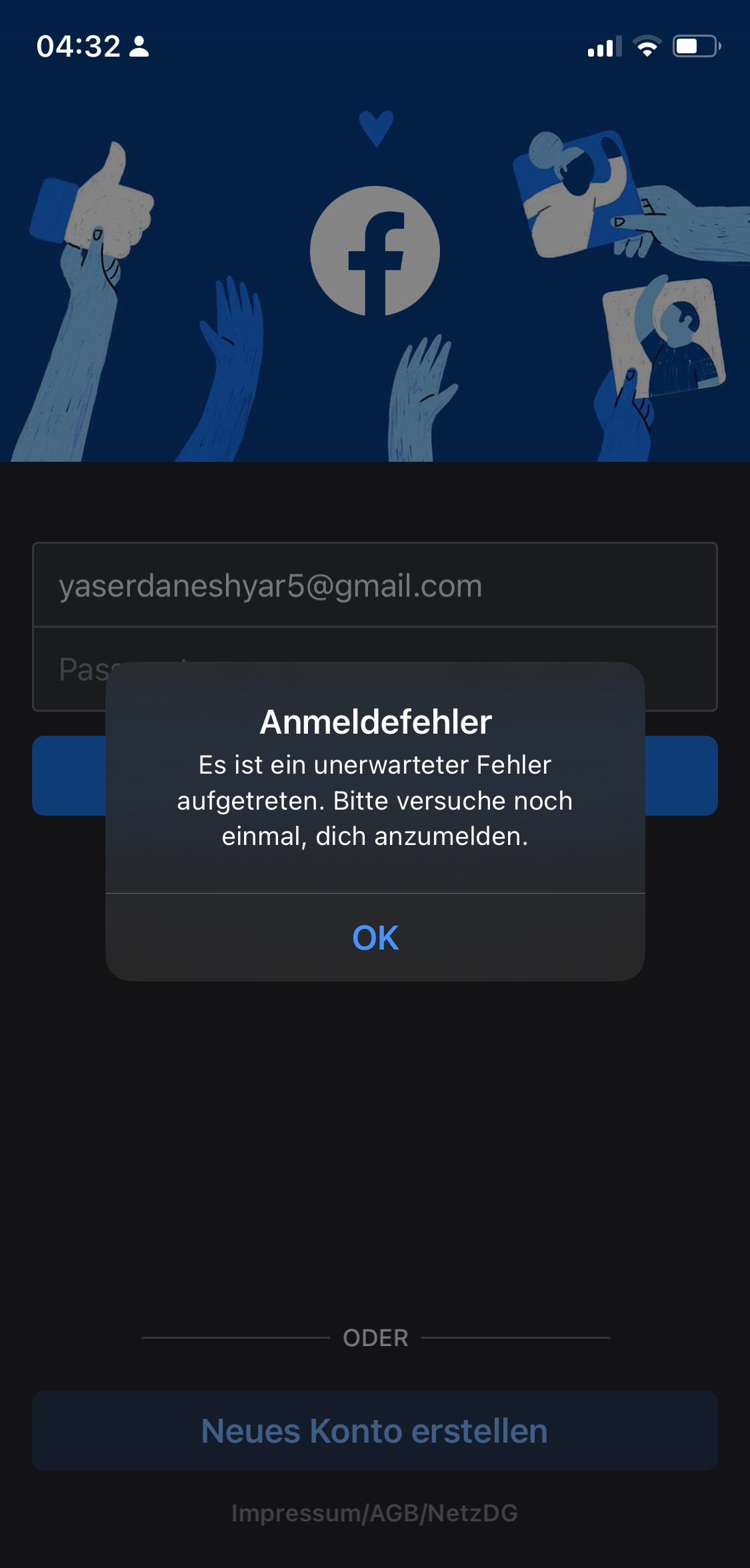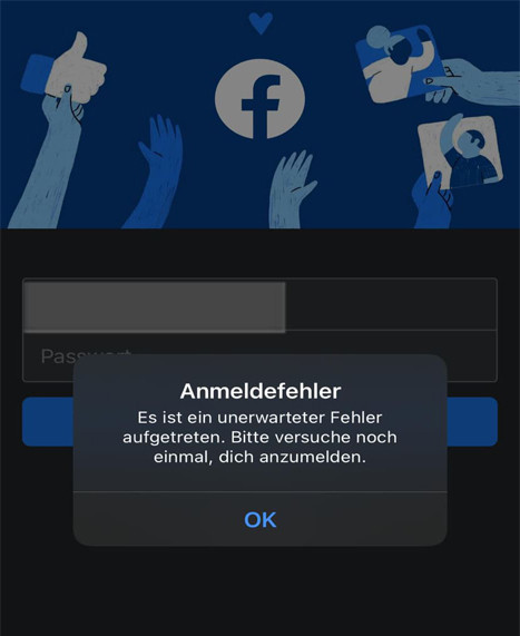 Hallo zusammen. Ich versuche seit paar Monaten immer mal wieder mich bei Facebook über mein Iphone 11 Pro über die Facebook App mich anzumelden... Leider kommt immer wieder der selbe Fehler: ( Siehe Bild )
