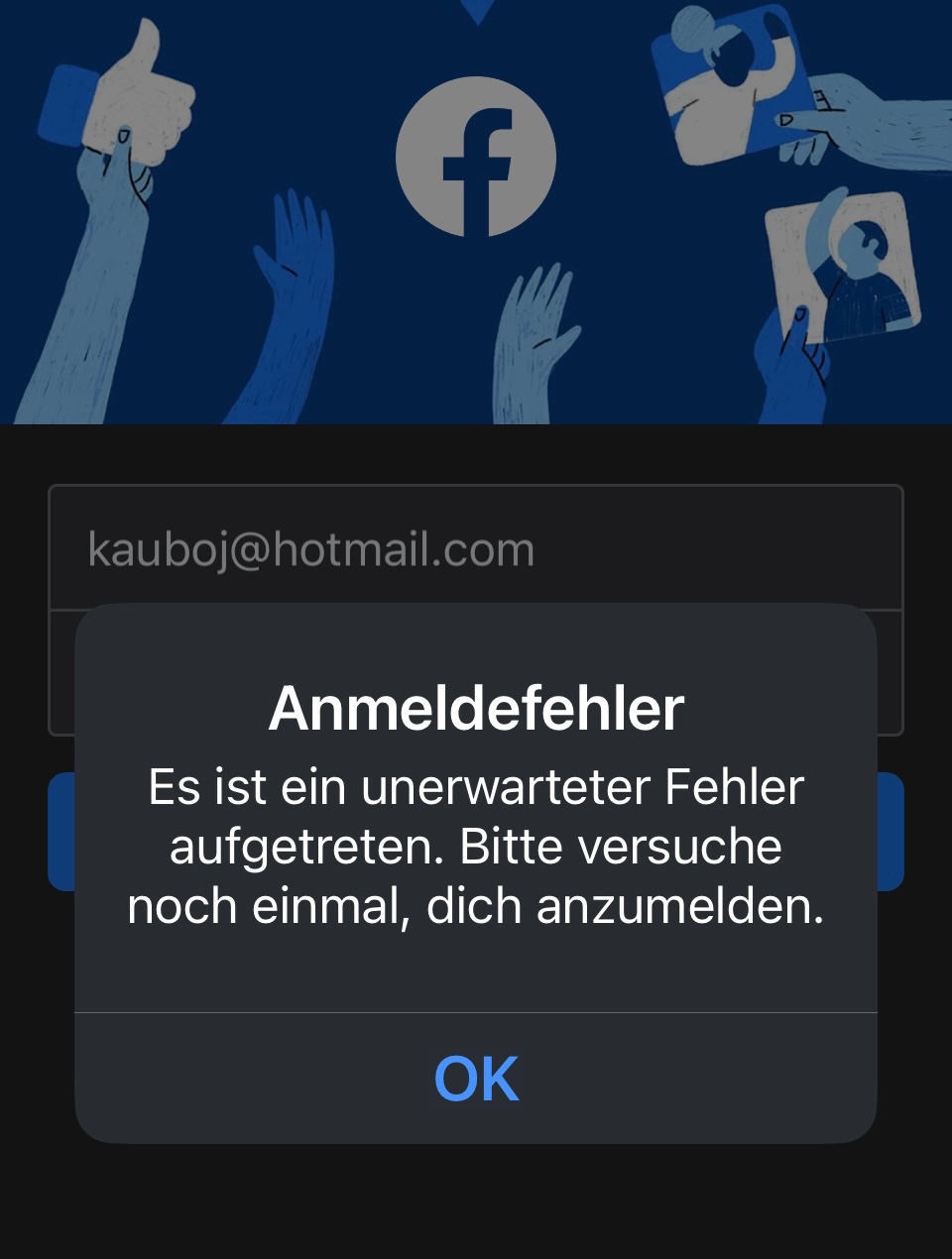 Hallo zusammen. Ich versuche seit paar Monaten immer mal wieder mich bei Facebook über mein Iphone 11 Pro über die Facebook App mich anzumelden... Leider kommt immer wieder der selbe Fehler: ( Siehe Bild )