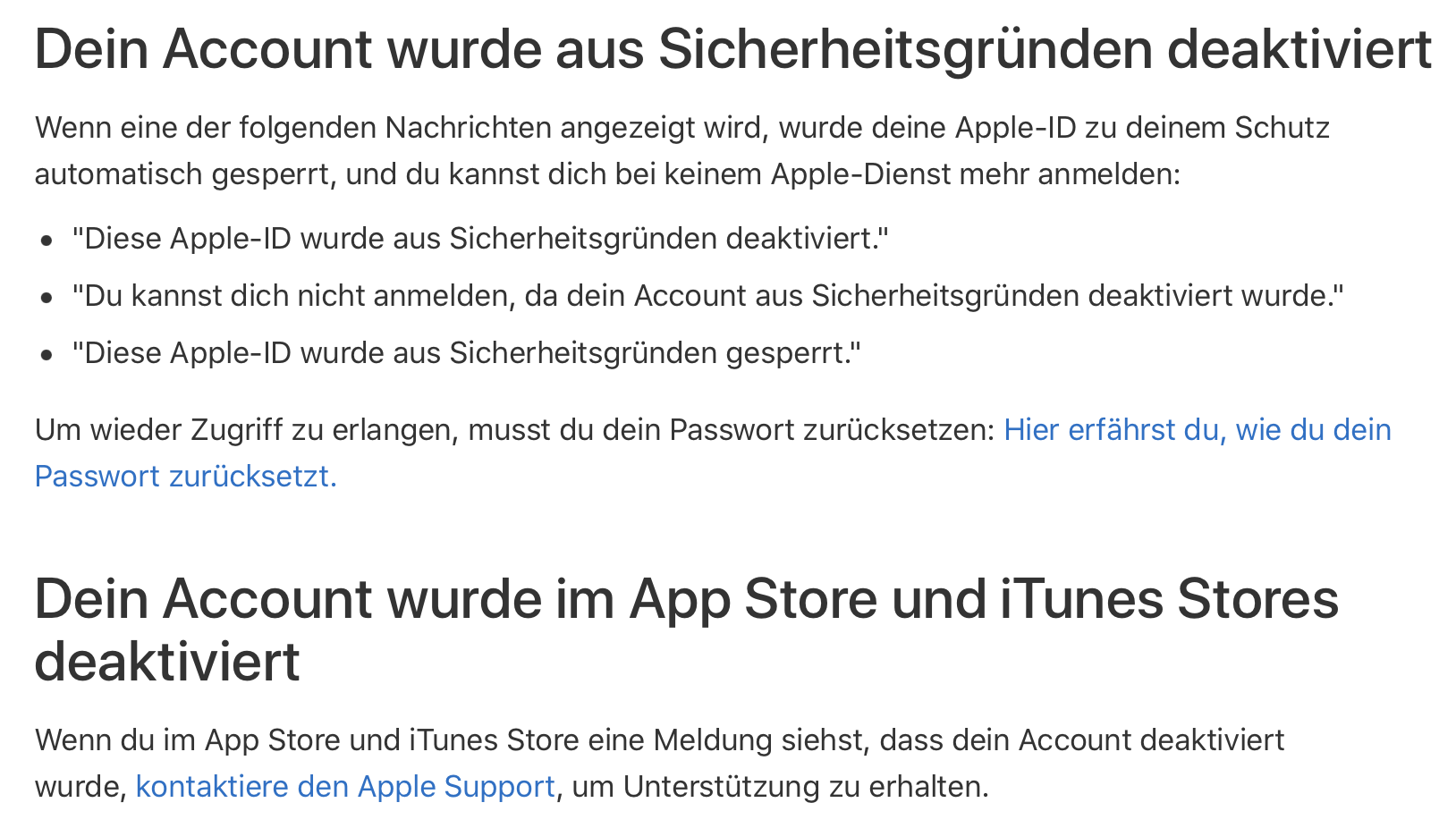 Nach einer kompletten Neuinstallation kann ich mich nicht mit meiner AppleID anmelden. (iMac late 2012 27", 3,2GHz i5, 8GB Ram, Geforce 680MX, 3TB FusionDrive, Catalina). Nach einigem hin- und her hat eine Anmeldung im Appstore geklappt, der Rest dann aber nicht mehr. Teils Fehlermeldung, falsches Passwort, danach dann deaktiviert es zuverlässig die AppleID. Teilweise komme ich bis zur 2-Faktor Authentifikation, danach dann -> Aus Sicherheitsgründen wurde die AppleID deaktiviert.