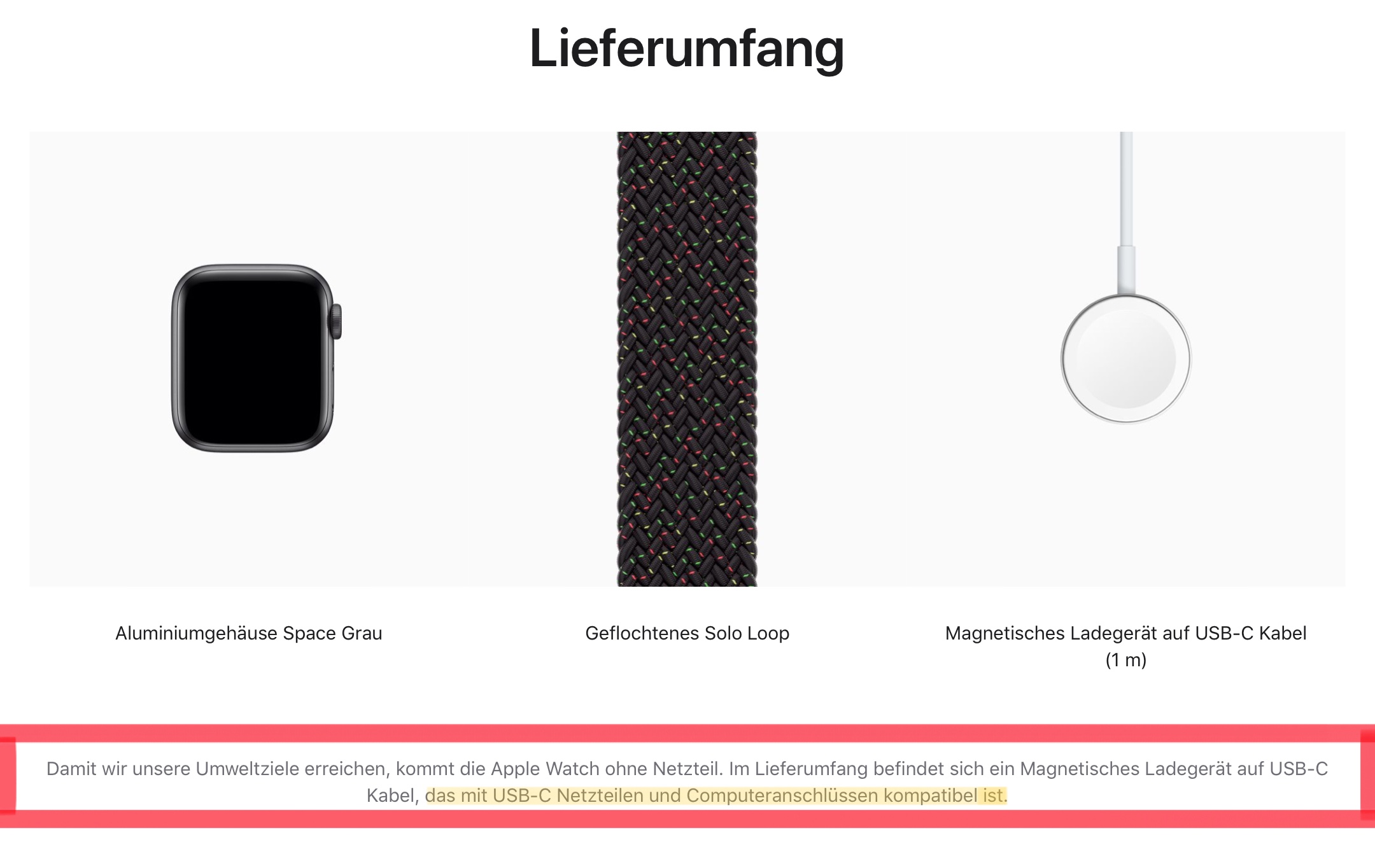 Dasselbe USB-C-Netzteil, das du auch zum Aufladen von deinem Handy benutzt, steht aber auch alles auf der Apple Homepage unter dem Lieferumfang (https://www.apple.com/de/shop/buy-watch/apple-watch-se/).