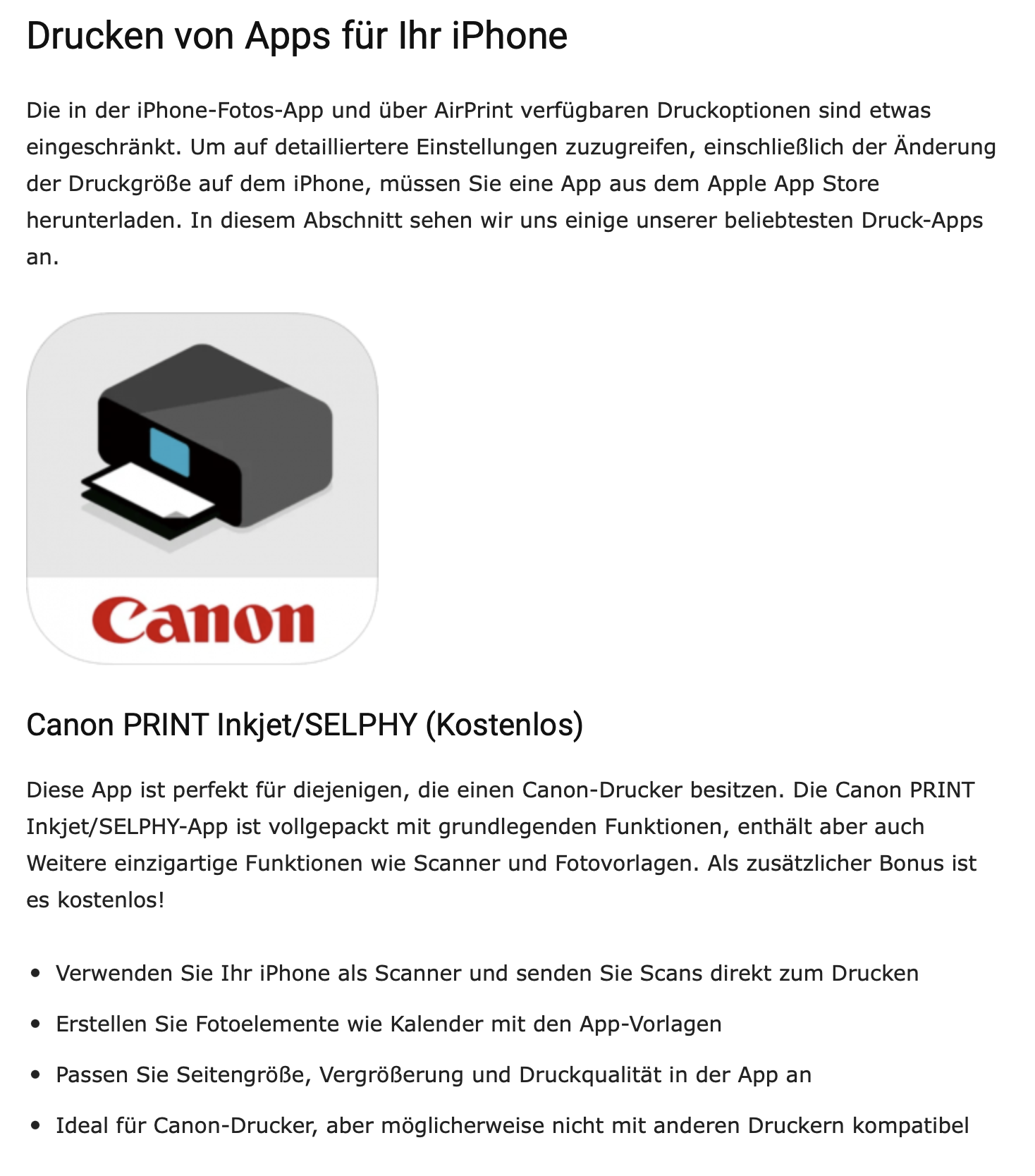 ich nutze einen Canon Drucker und habe mir die passende App aus dem App Store installiert.