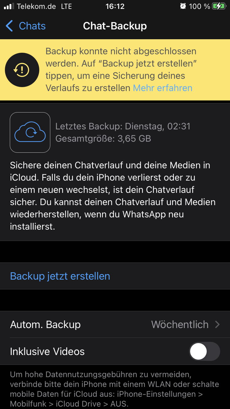 Würde gerne, wenn es geht das Backup von iCloud vermeiden und nur das direkte dann von WhatsApp nutzen.