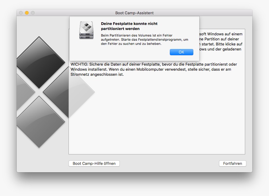 Boot Camp - Deine Festplatte konnte nicht partitioniert werden