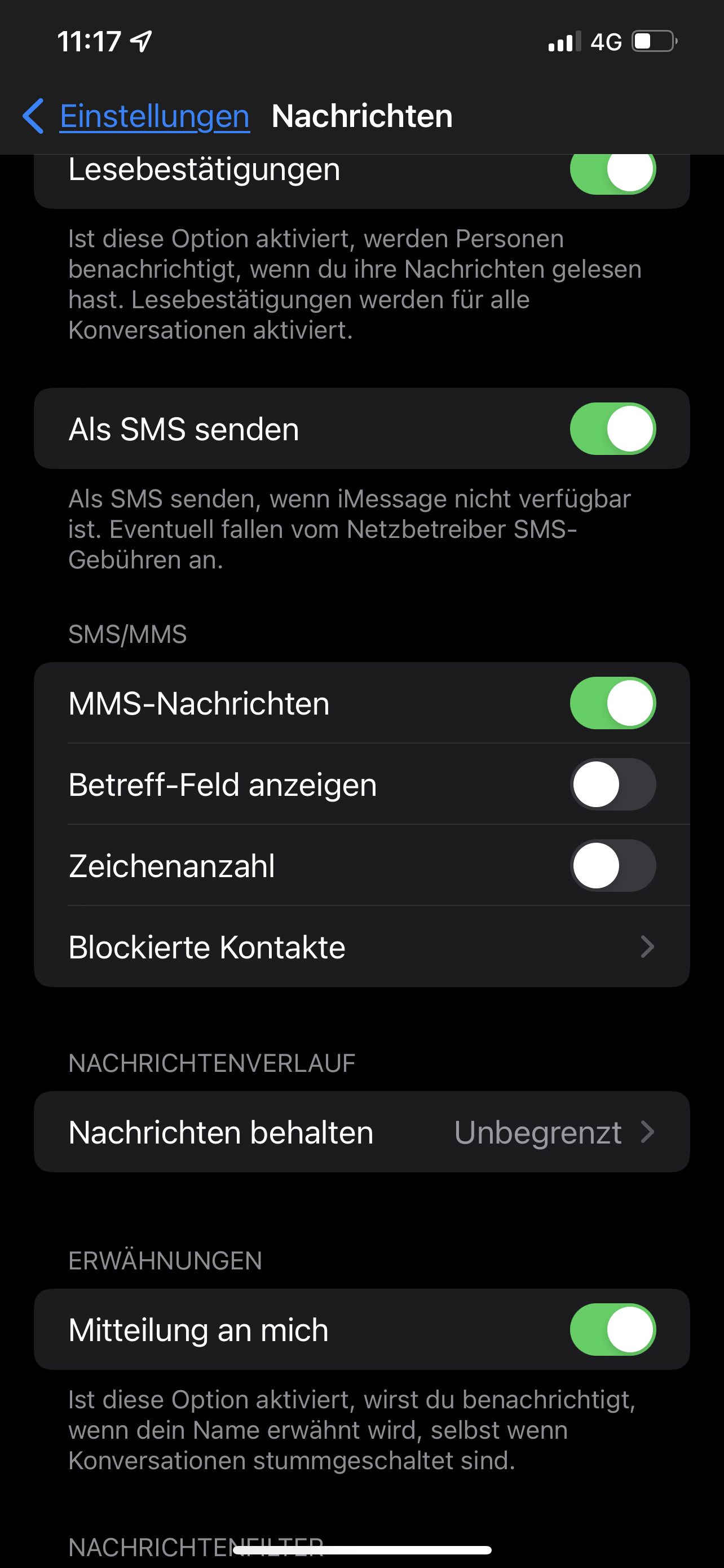 In Einstellungen -> Nachrichten kannst du dies überprüfen / ändern: