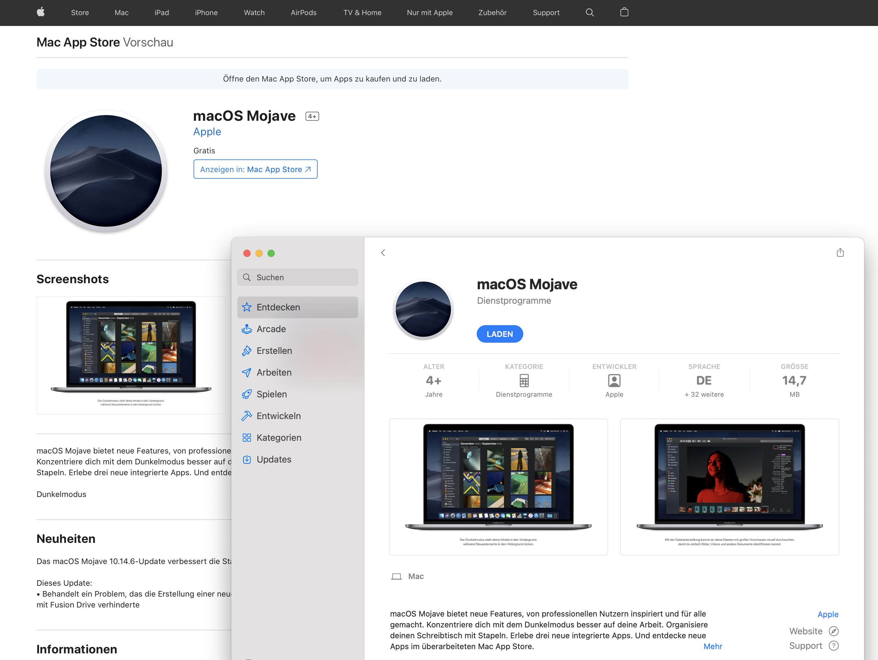 wie funktioniert der download von Mojave? komme nur in die App Store Vorschau wenn ich Mojave anklicke...