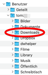 Öffne den Finder und ziehe den Download-Ordner aus der linken Spalte in den Bereich des Docks, wo er zuvor war.