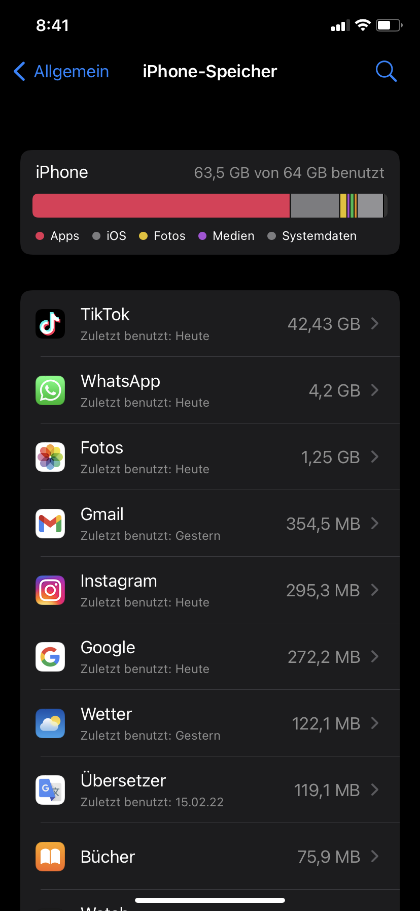 Ich würde erstmal Daten auf dem iPhone löschen. Bspw nutzt TikTok knapp 80% deines Speichers.