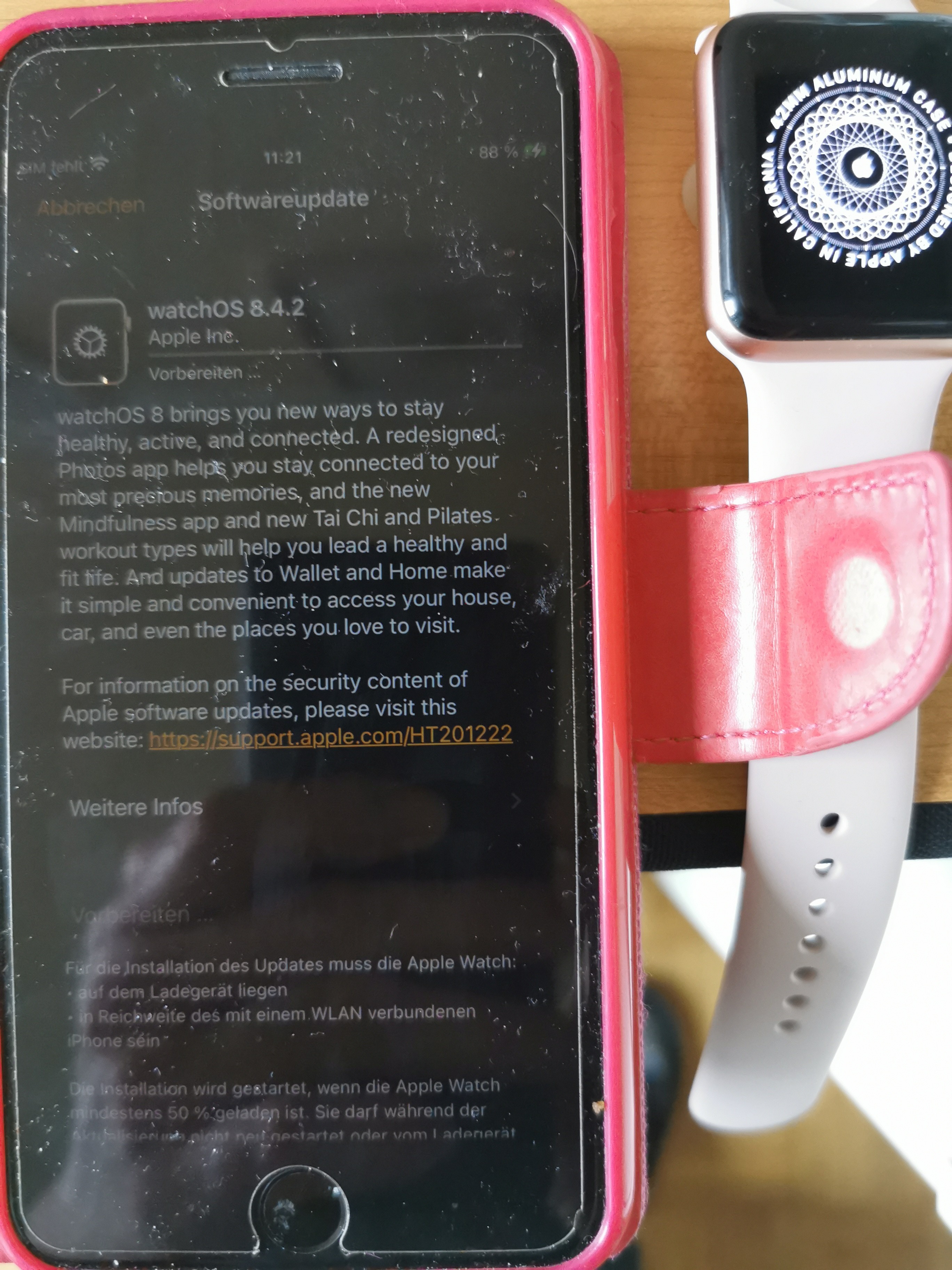Was ist zu tun wenn das Update 8.4,2 für die AppleWatch 3 vom Iphone 12 nicht installiert werden kann? AppleWatch ist in der Cloud, es existiert kein Backup.