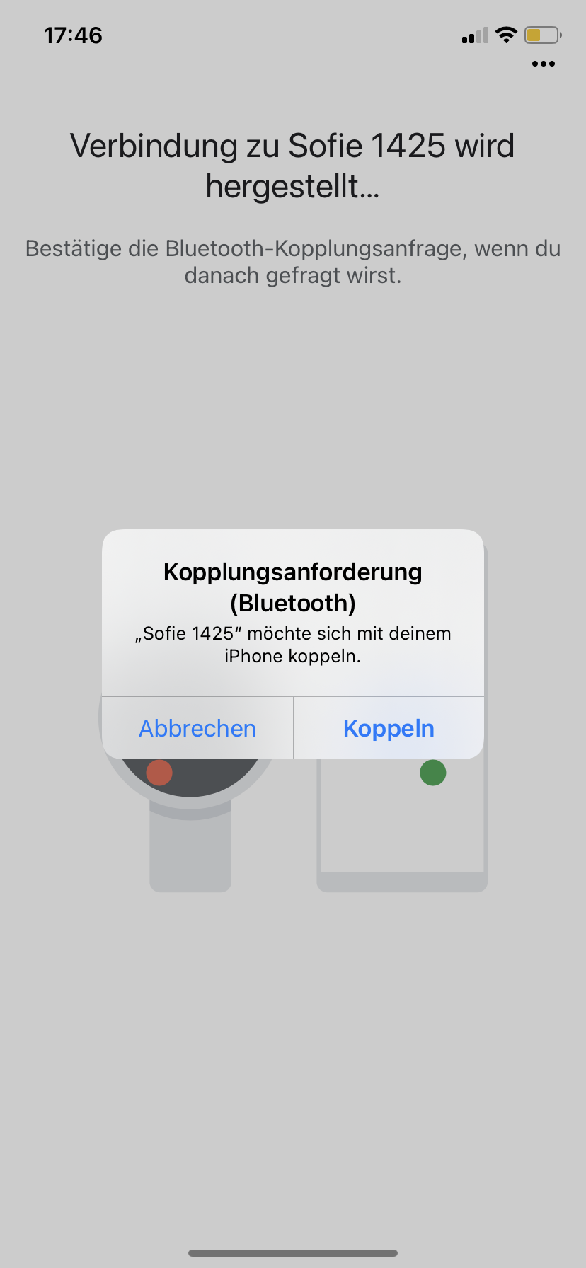 ich hoffe, hier kann mir jemand helfen. Ich habe eine Smartwatch von Michael Kors und ein iPhone 11 und egal was ich versuche, die wollen sich einfach nicht verbinden. Hat jemand eine Idee wieso? Ich hab beides schon Neu gestartet und die Uhr zurückgesetzt und alles aber jedes Mal, wenn meine App (Wear OS by Google) die Uhr findet, steht direkt danach „Verbindung nicht möglich“ und da komme ich seit Tagen einfach nicht weiter! Ich bin super verzweifelt!!!