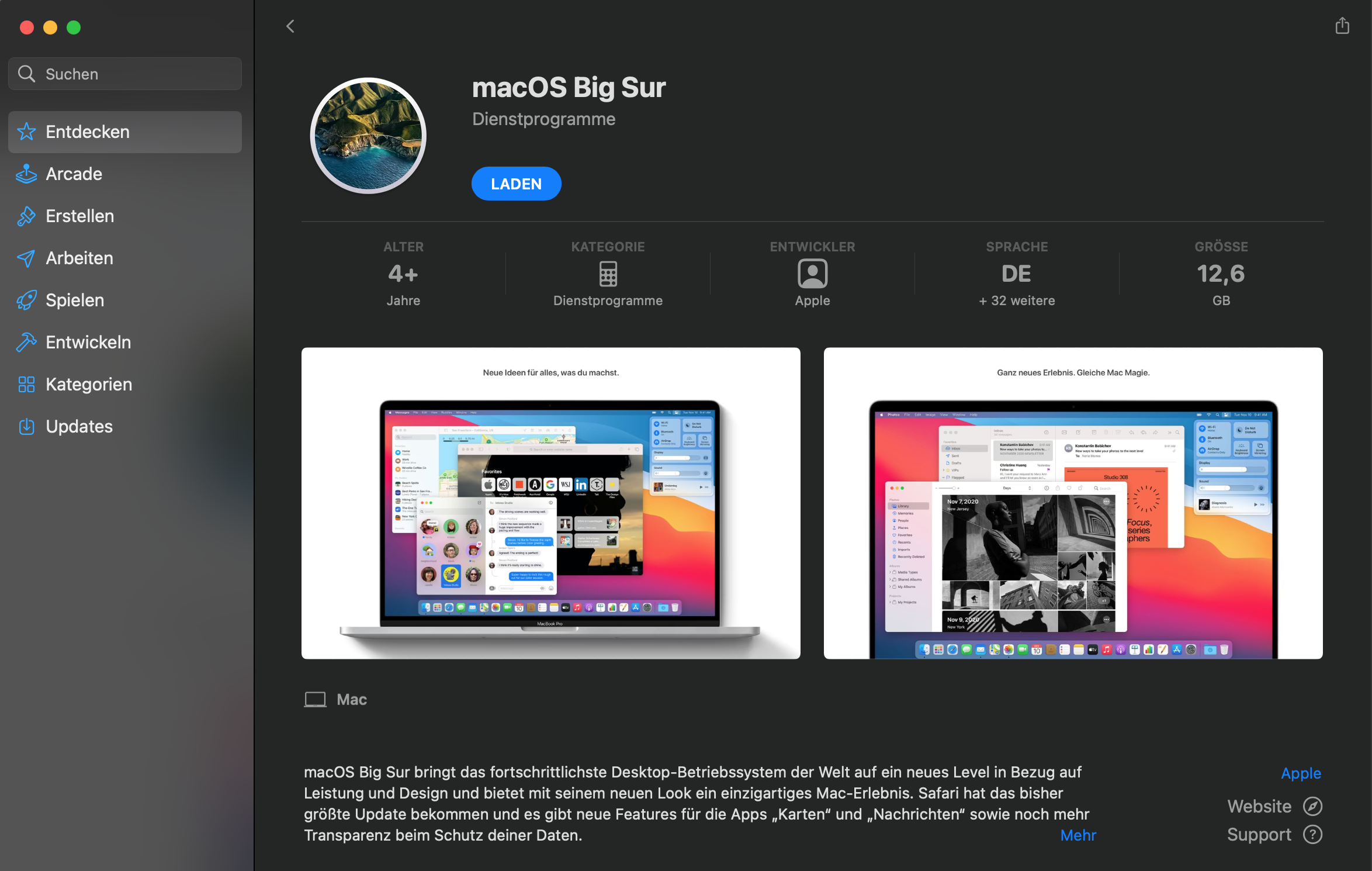 Für das Upgrade auf MacOS Big Sur brauchst du mindestens 36 GB ❗️freien Speicherplatz auf deinem Startlaufwerk/SSD; ferner sollte keine Antiviren-Software installiert sein, die eine reibungslose Installation von Big Sur verhindern wird.