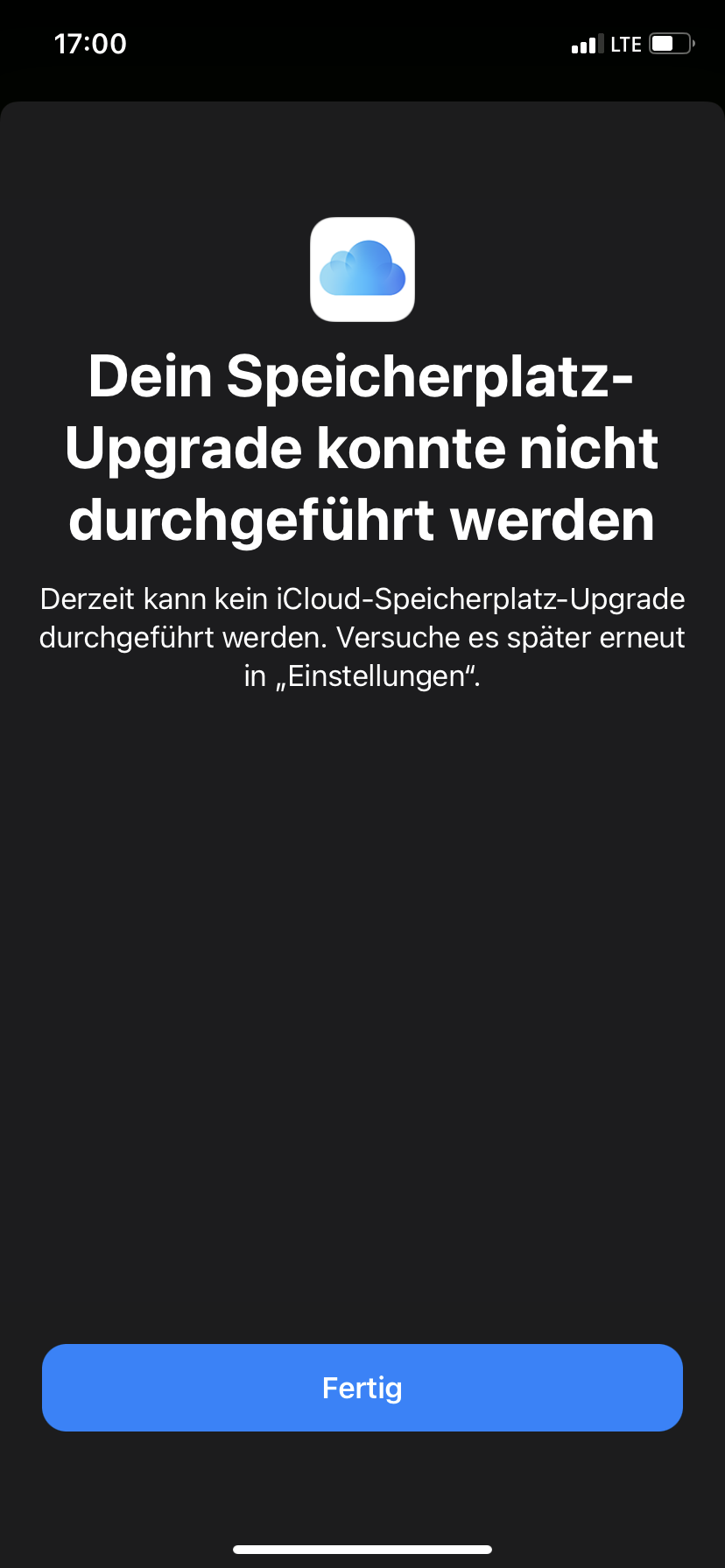 iCloud Upgrade funktioniert nicht. Fehlermeldung! Seit Wochen.