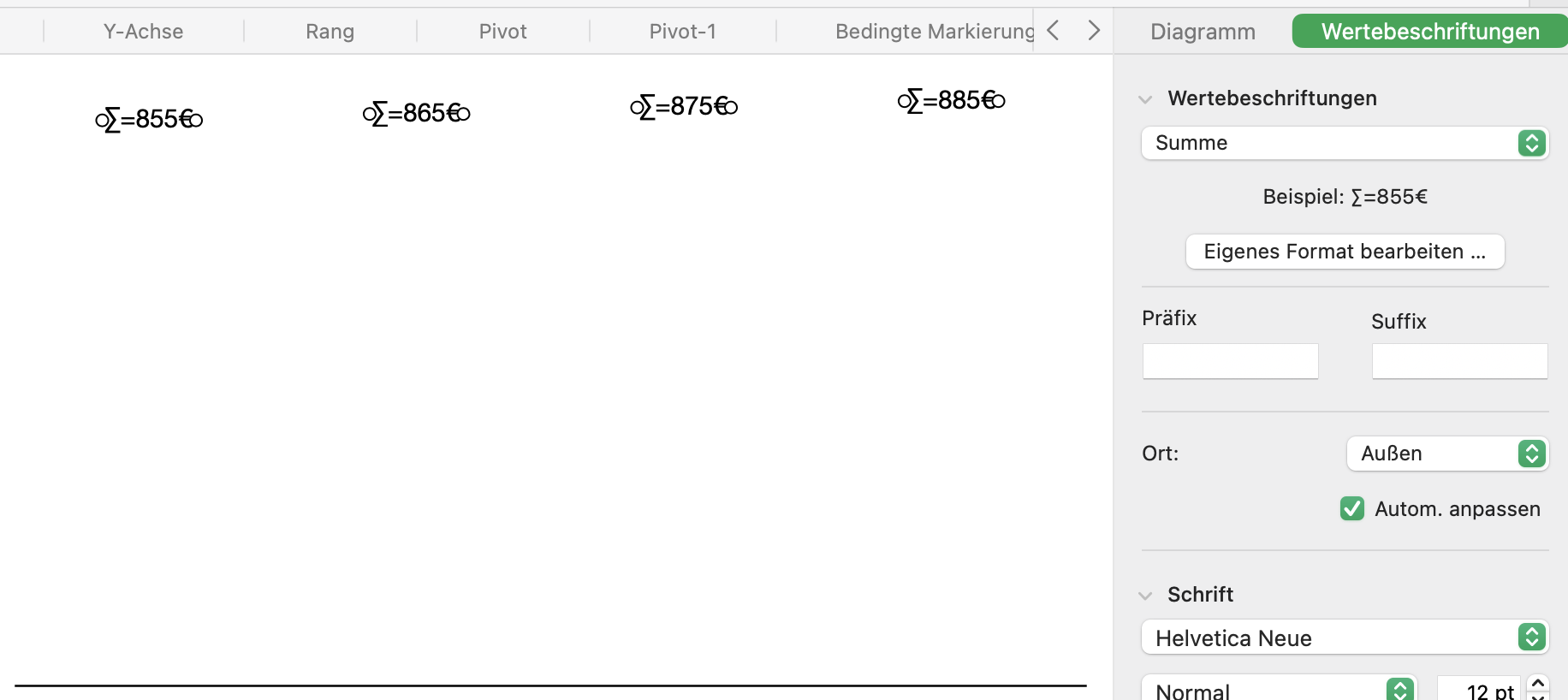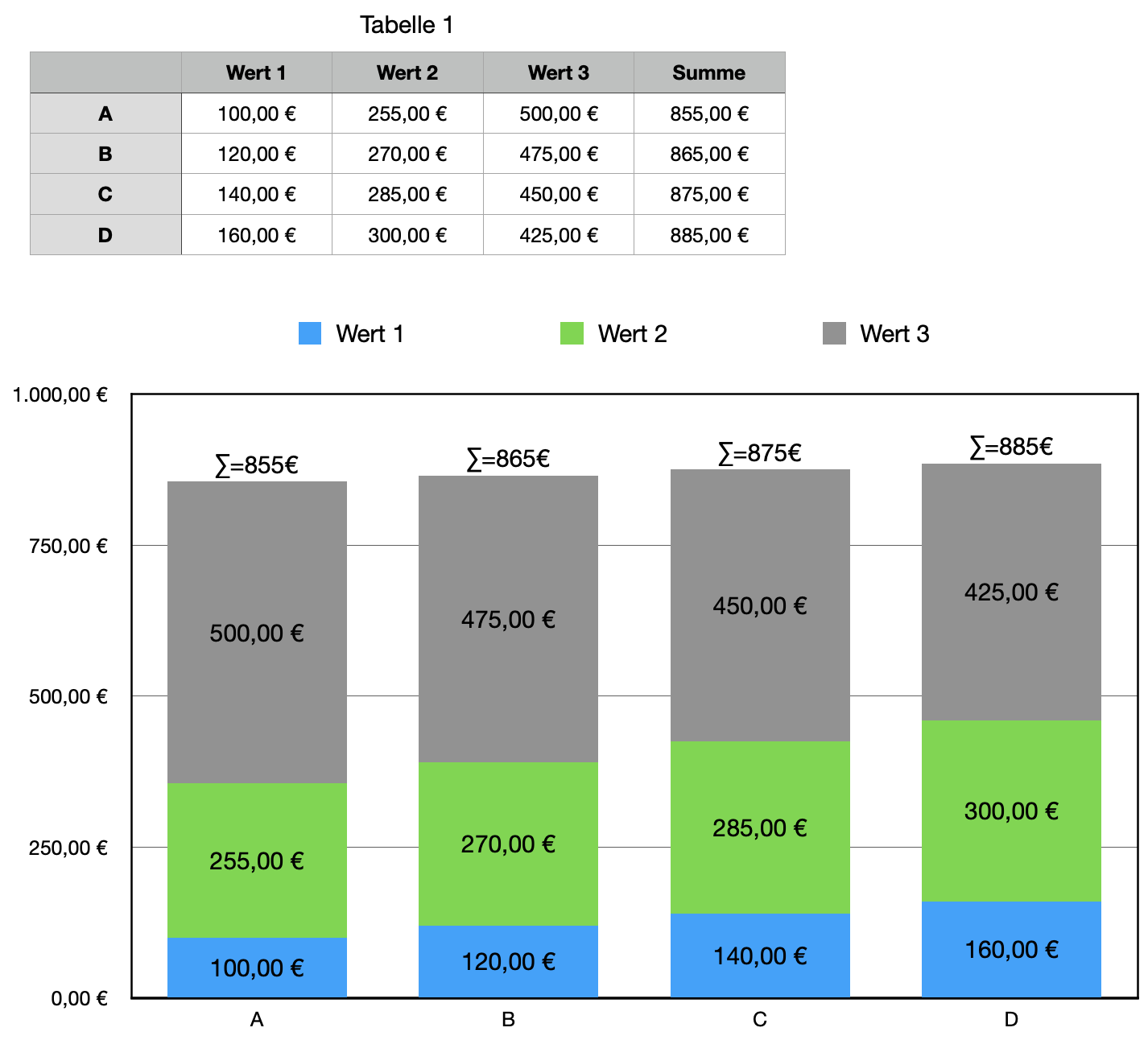 Wenn du willst kannst du ja noch einen Stil für die Werte Beschriftung erzeugen, damit es klar ist das dieses die Summe ist.