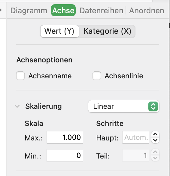Unter Stil schaltest du die Füllung aus. Die Beschriftungen für X & Y Achse werden auch ausgeschaltet.