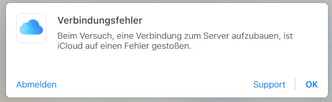 Beim Versuch, eine Verbindung zum Server aufzubauen, ist iCloud auf einen Fehler gestoßen.