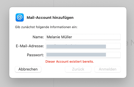 Ich kann meine E-Mail Adresse nicht mehr installieren (Apple Mail)