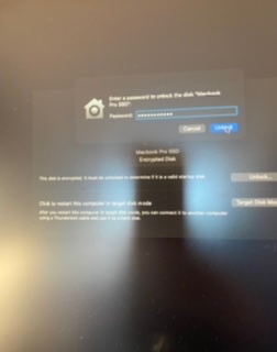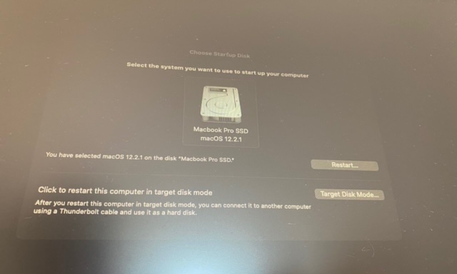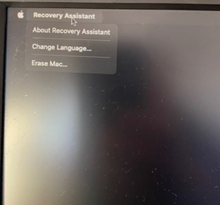 Ergänzung: Der Bildschirm am Mac selbst bleibt schwarz (recovery mode Optionen werden nur über externen Bildschirm angezeigt)