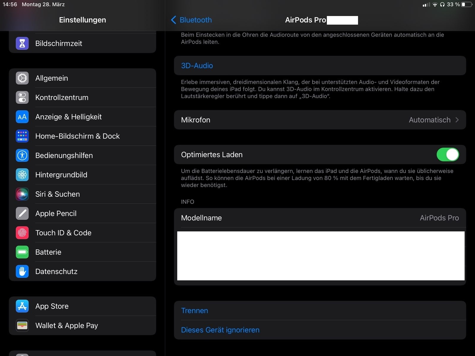 Was ist bei den Einstellungen deiner AirPods genau sichtbar? Vielleicht könntest du deine Bildschirmaufnahme erstellen und mit der Community teilen, dann können wir uns ein besseres Bild von deiner Situation machen. Achte nur darauf, dass keine privaten Details sichtbar wären: Bildschirmfoto auf dem iPhone aufnehmen.