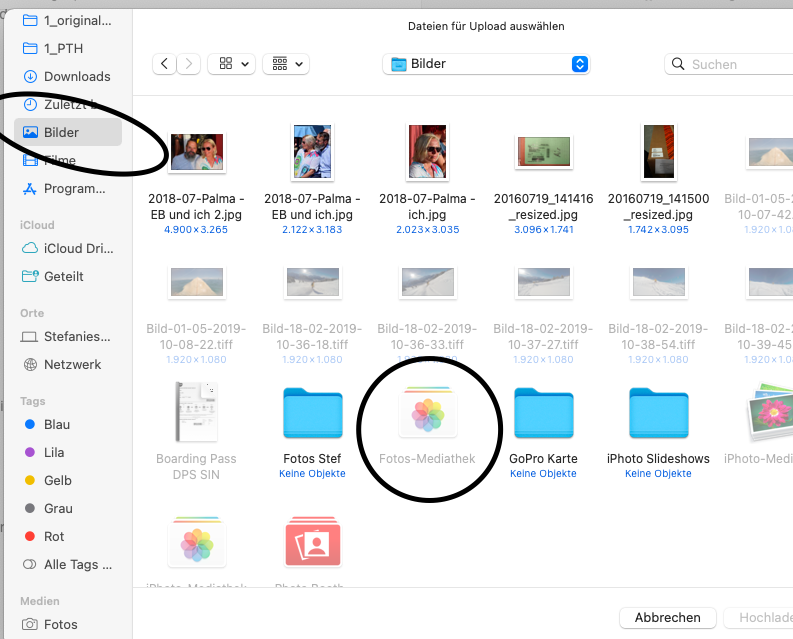 Im Finder erscheint die Foto-Mediathek grau hinterlegt und ist somit nicht auswählbar. Bzw. unter Fotos erscheinen nur wenige Fotos aus einem speziellen Ordner. WIE KOMME ICH AN MEINE FOTOS ZUM EINFÜGEN?